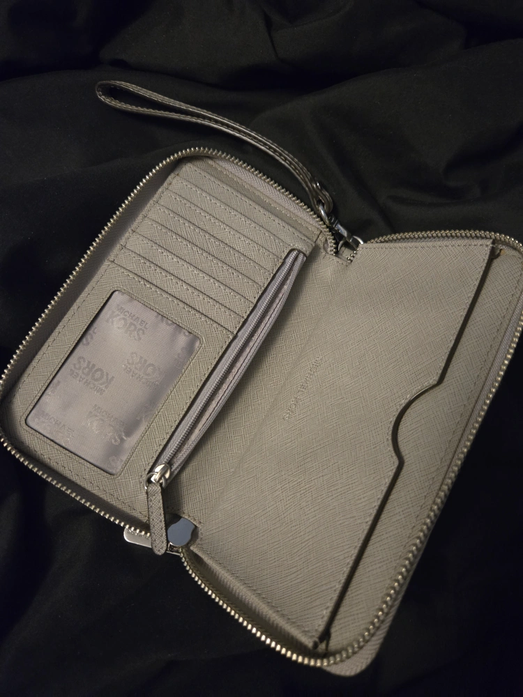 Selling a gently used Michael Kors wristlet wallet. It's in great condition and perfect for carrying your essentials! The colour is a nice neutral grey.