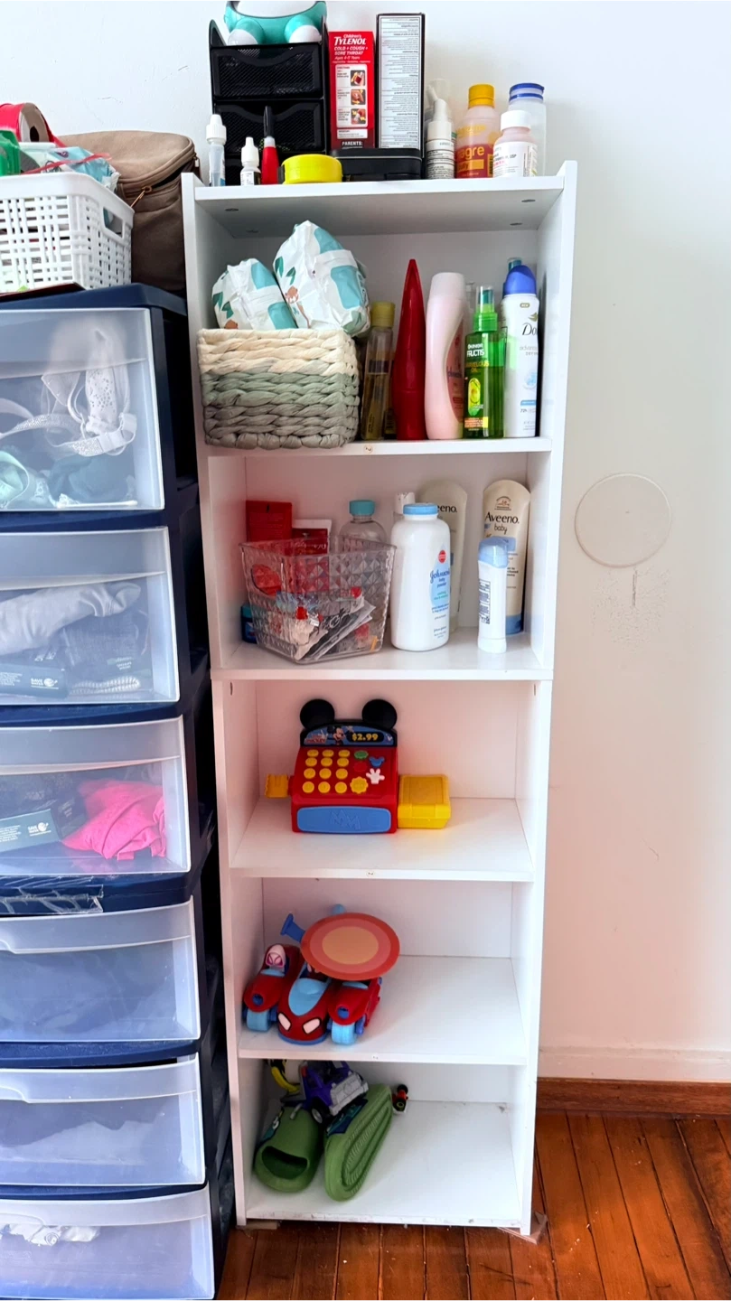 Selling a simple white bookcase with 5 shelves! It's in great shape and ready to hold your books, decorations, or anything else you need to organize