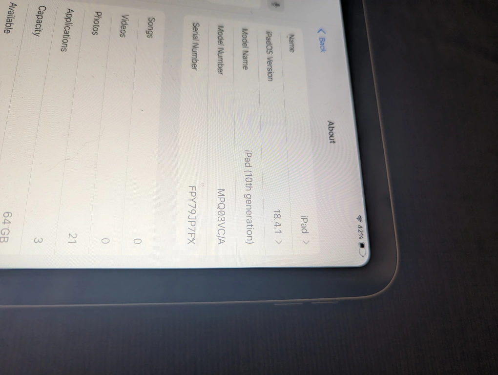 196iPad 10 available. 64 gb was my Nana's before she passed away. asking 375 obo