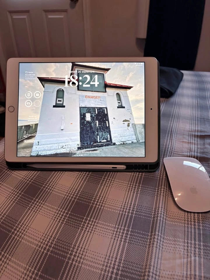 It has no scratches, runs smoothly, and the battery easily lasts 2 days (depending on usage of course). It comes with the stylus. Magic Mouse available for $30.