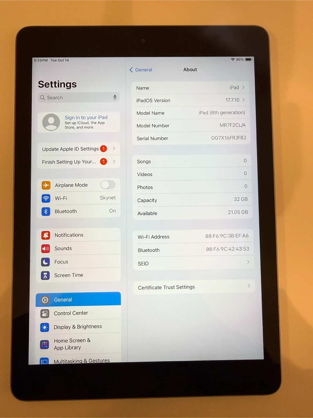 I have an iPad Series 6 up for sale. The memory on it is 32GB. Asking $130 firm. You can call, text or email me with any further questions, name’s Nabeel, cell number 9055983705. Thanks for looking.