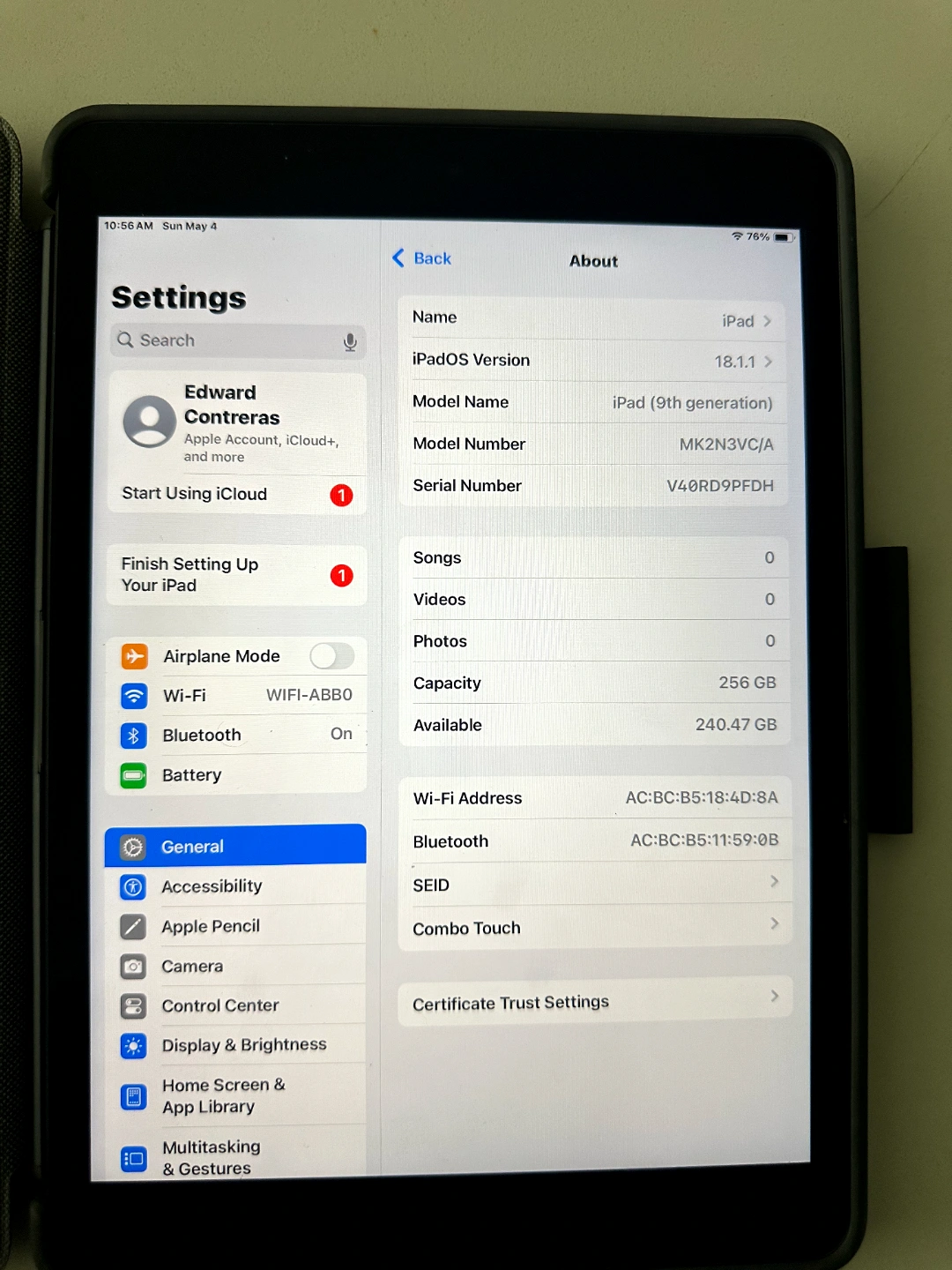 - Apple iPad 9th Gen – 256GB (Wi-Fi) -Includes Logitech Combo Touch Keyboard Case Price: $500