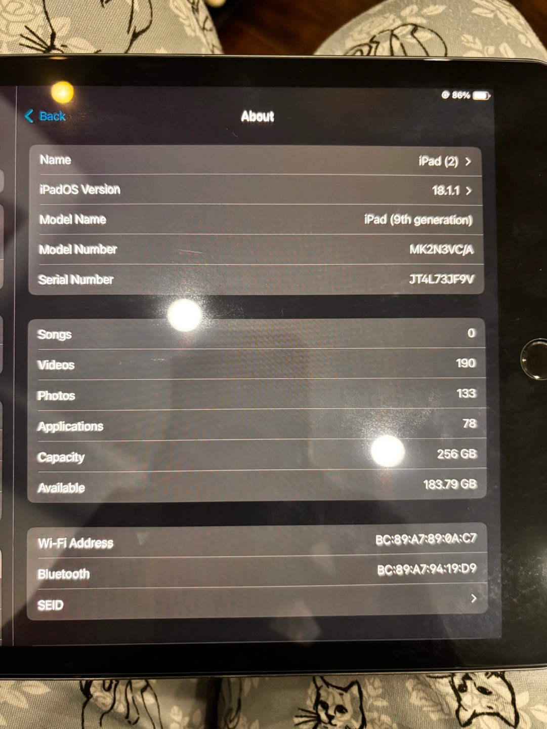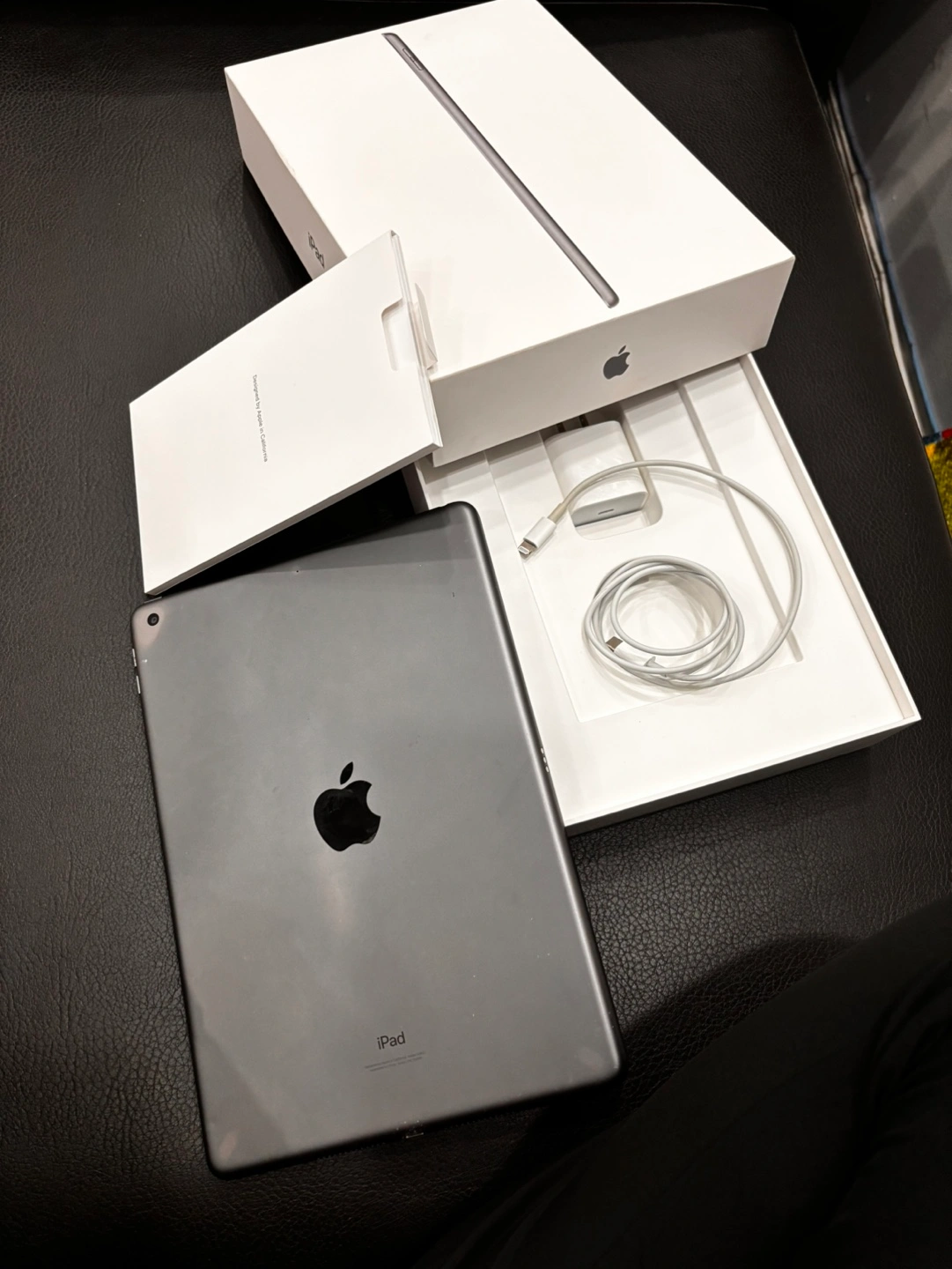 5Pre-owned iPad 9th generation. Space grey, 256 GB. Includes original box and accessories.