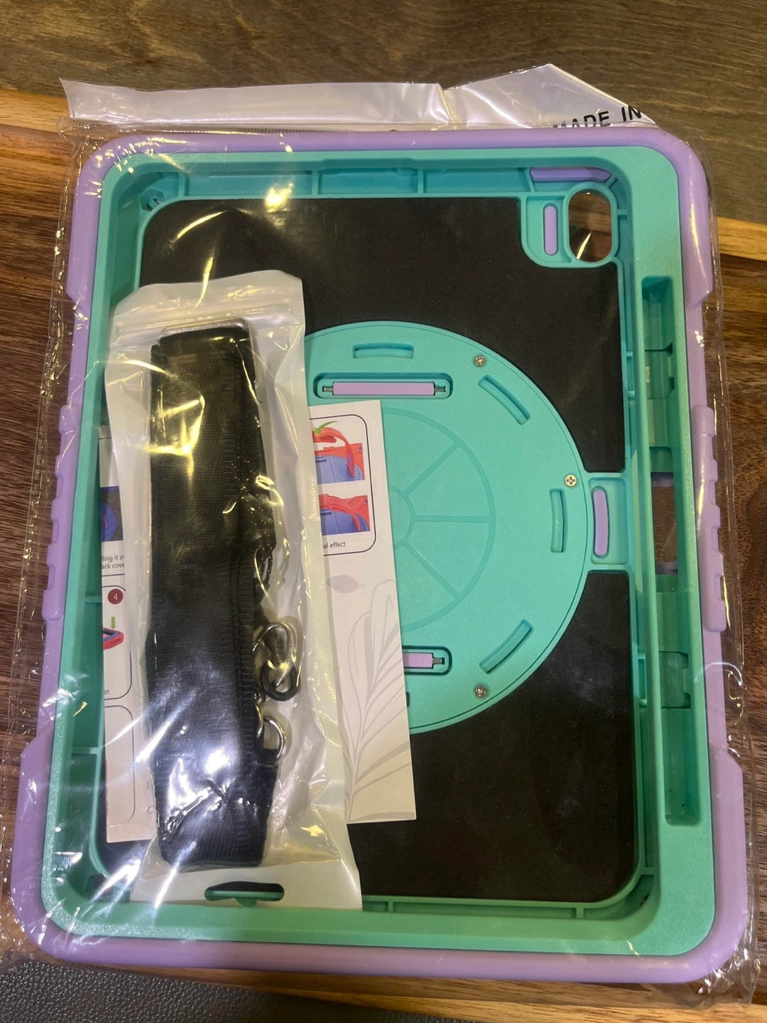 iPad Air 4/5/6 Rugged Case with Stand and Strap - Purple/Mint