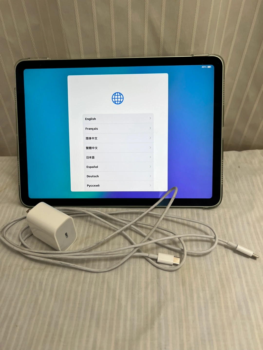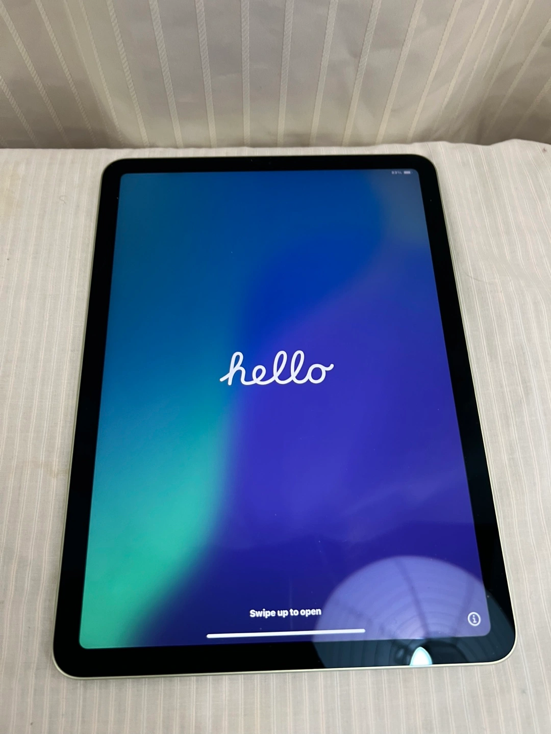 10Green iPad Air 4 64gb (wifi only) Great condition, lightly used. Battery health is good. Includes matching mint green 3rd Party Case/Portfolio, 2m USB-C cable and 20W charger.