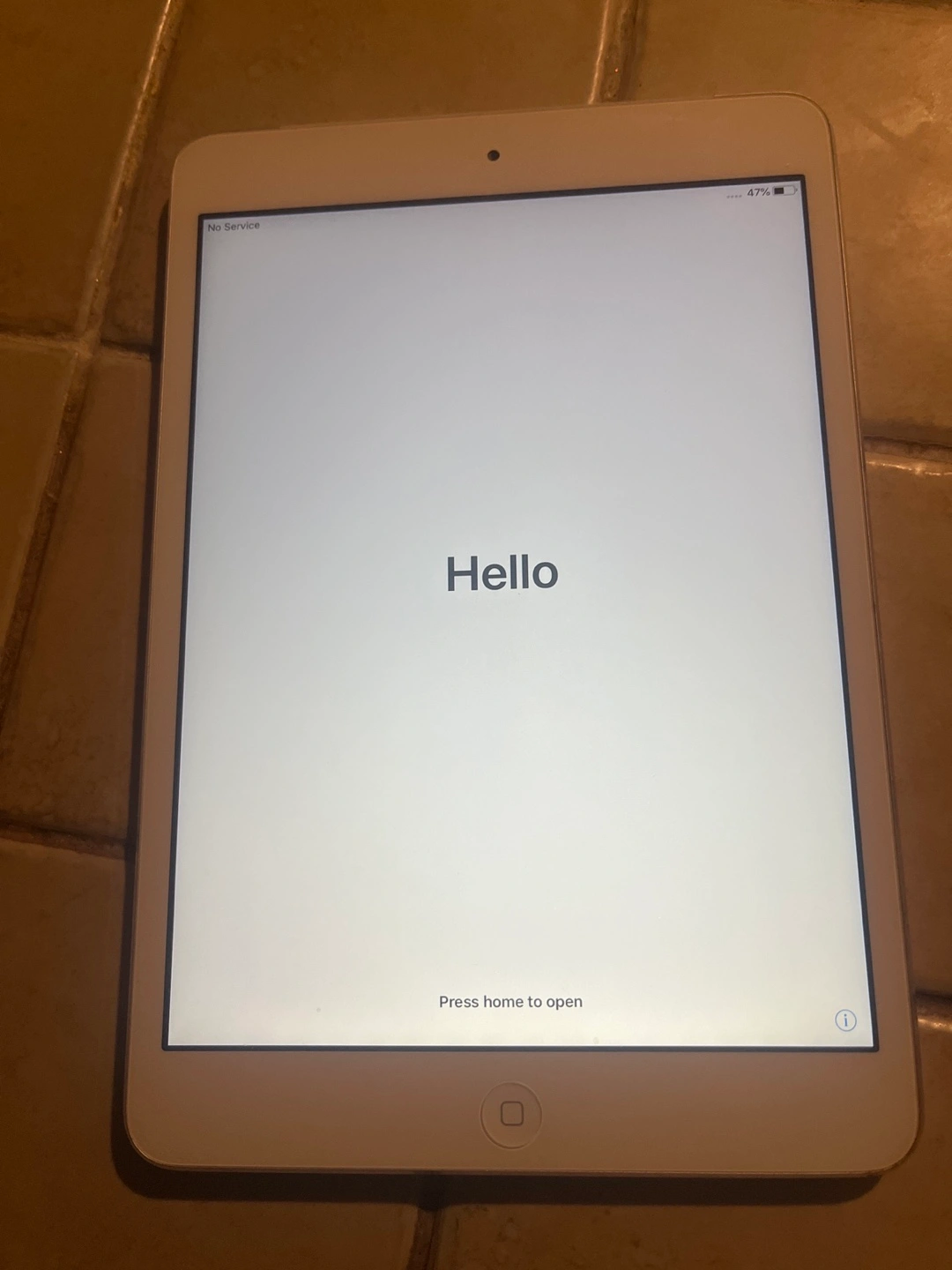 Pre-owned iPad Mini2. Silver colour. Shows some wear. Requires setup. Wifi+cellular Model #A1490
