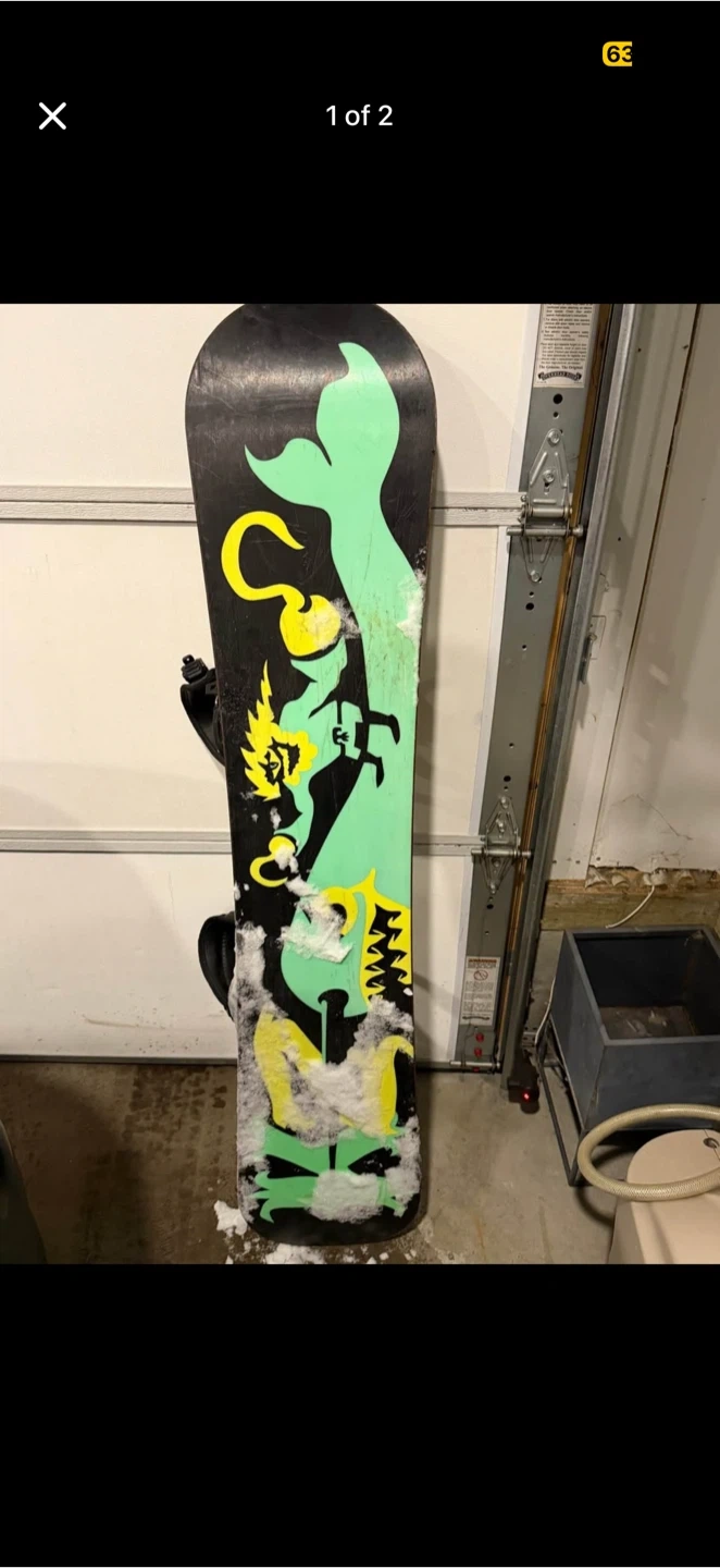 This is a 139cm snow snowboard with no bindings included. It features a colourful graphic design on the bottom, k2 snowboard. Good for beginners. Reason for sale- upgraded to a new one.
