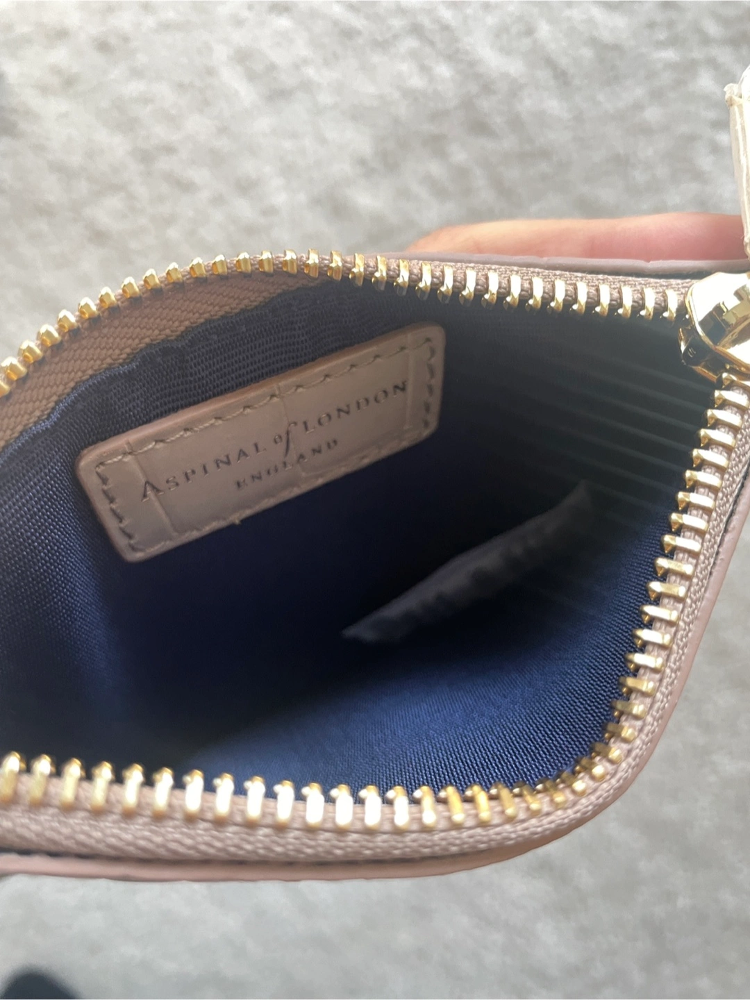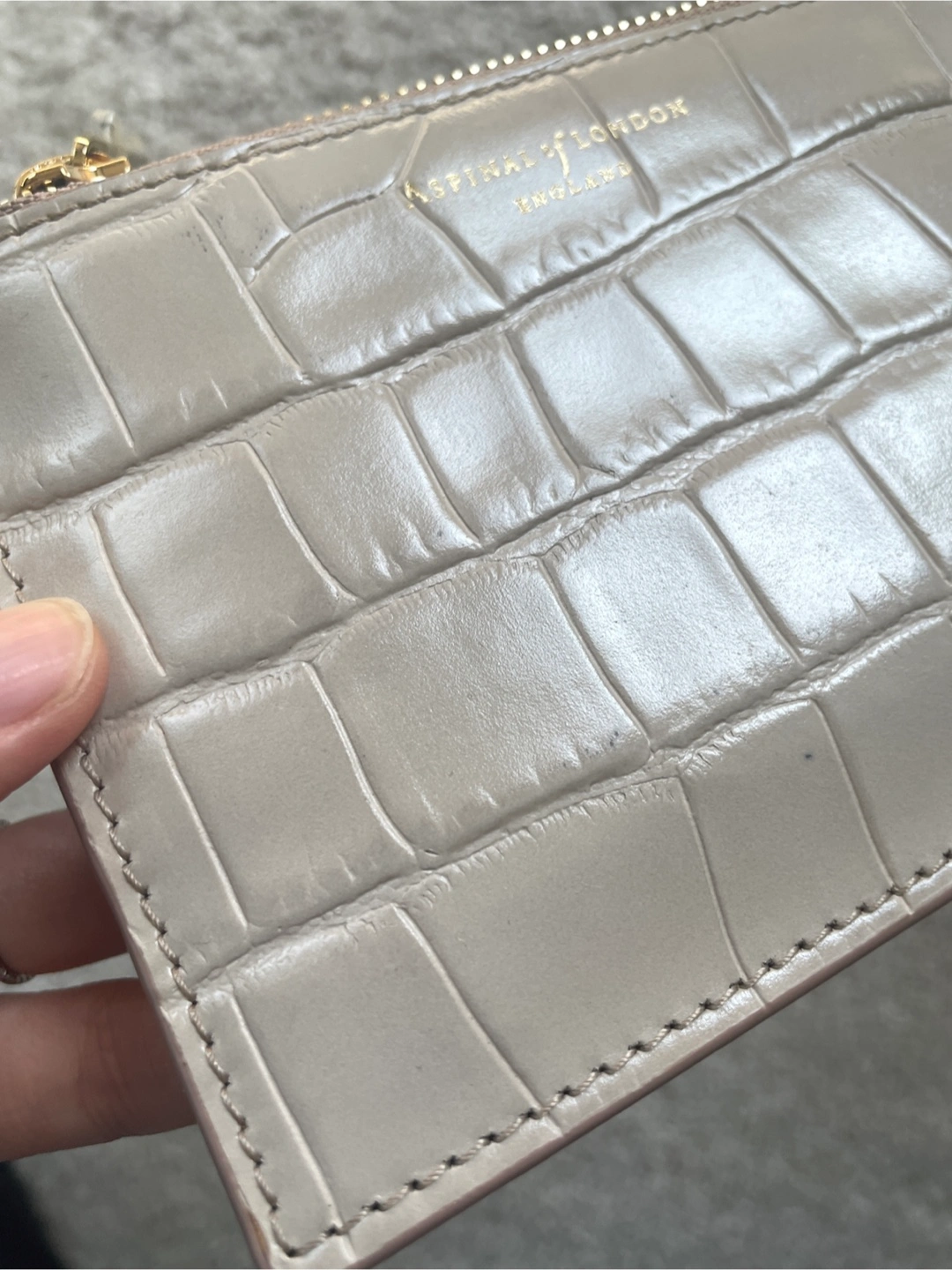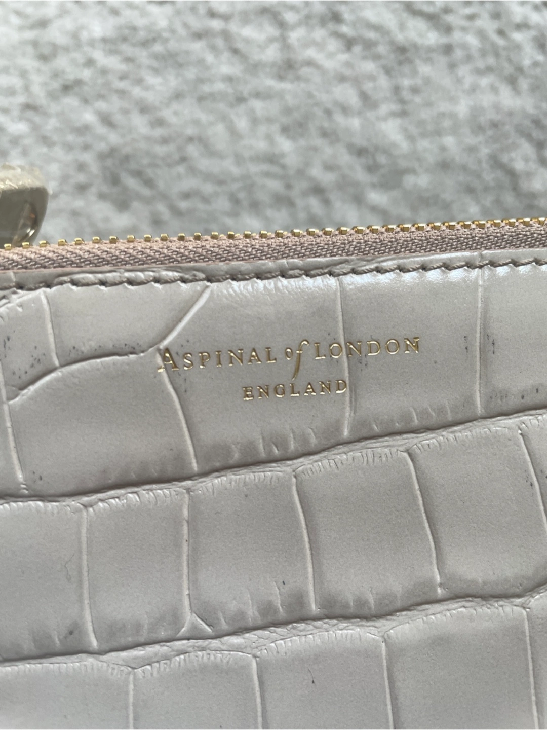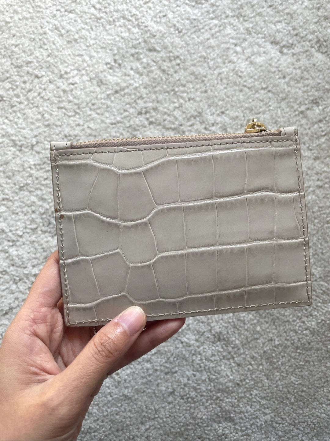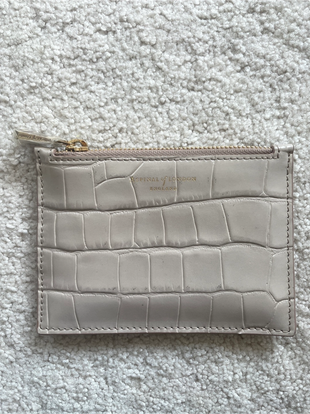 Selling an Aspinal of London card holder. It's a beautiful neutral colour with a croc-effect finish. Perfect for keeping your cards organized!