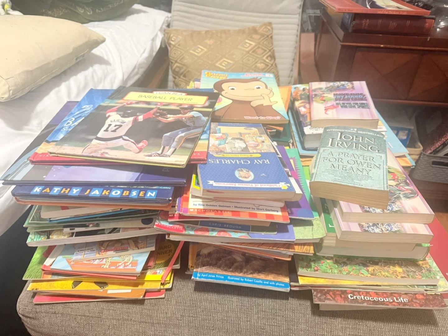 This is a collection of assorted books, including children's picture books and adult fiction titles. The collection features popular characters and well-known authors. They're suitable for readers of all ages.