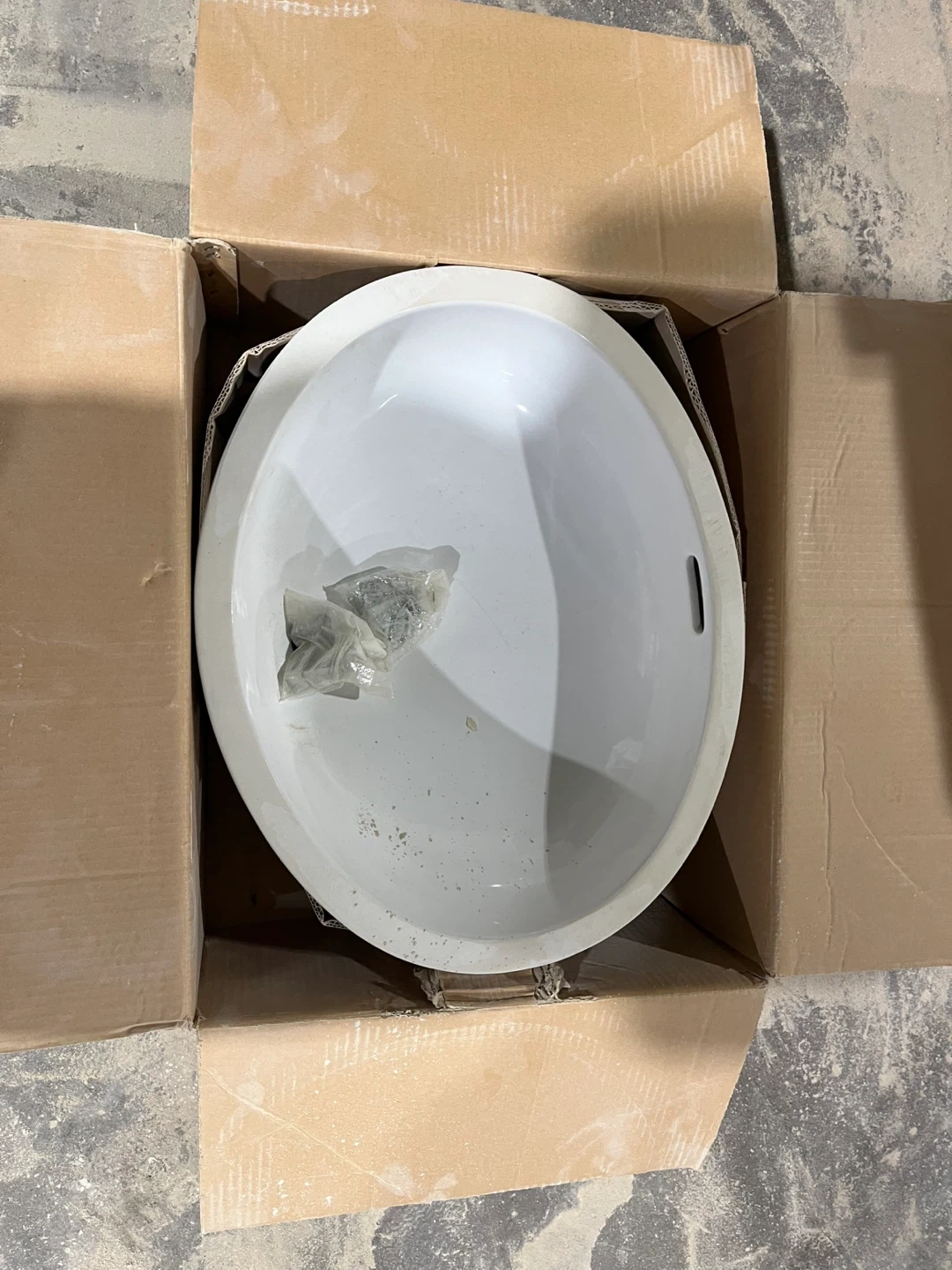 This is a Toto LT587#01 under counter lavatory. It's 19 inches by 15 inches. The colour is Cotton #01. This sink would be useful for a bathroom renovation.