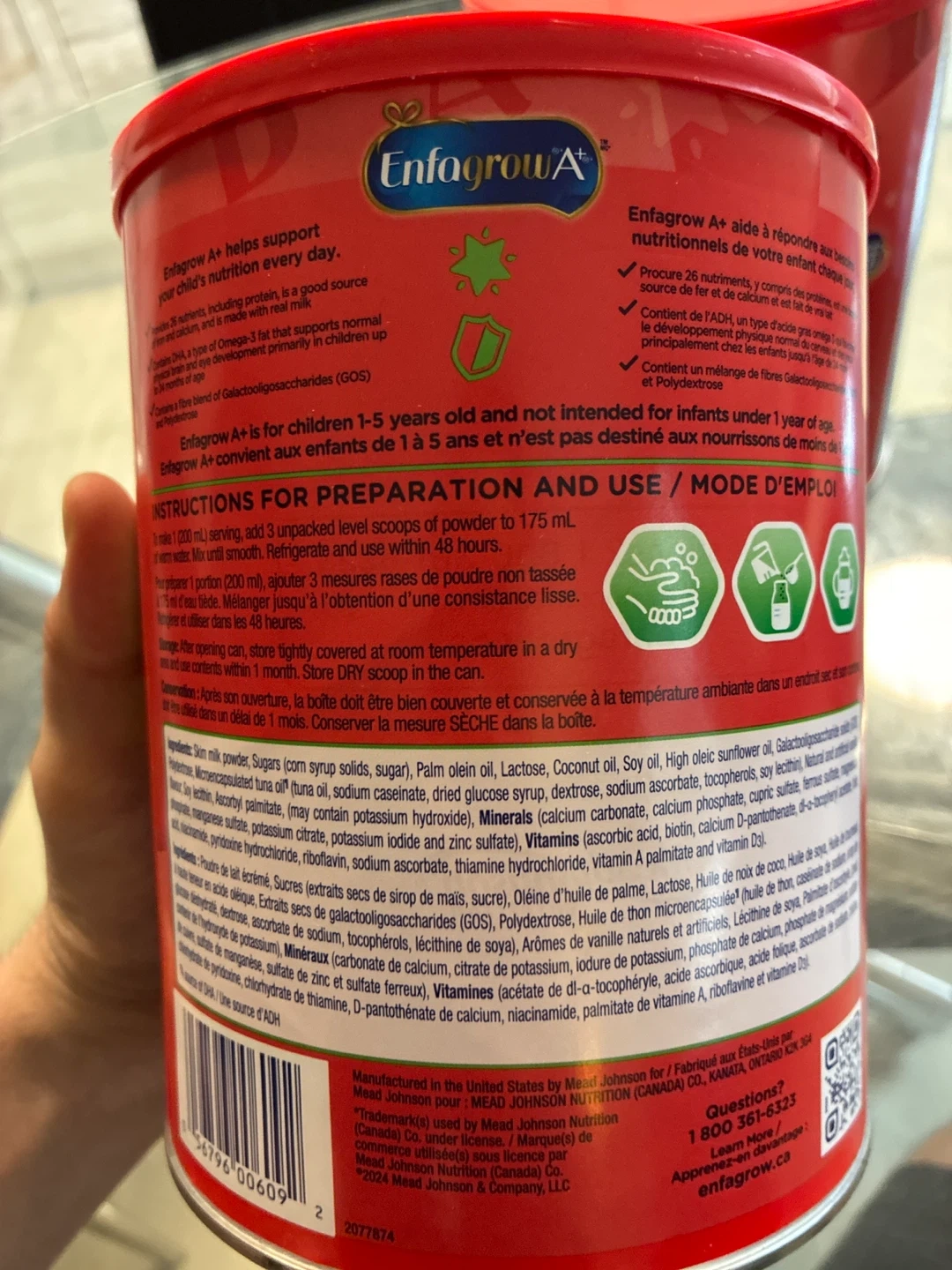 Enfagrow A+ is a toddler nutritional drink for children aged 1-5 years. It's made with milk powder and includes DHA Plus and ADH Plus. Contains 26 nutrients, including 2 dietary fibres.