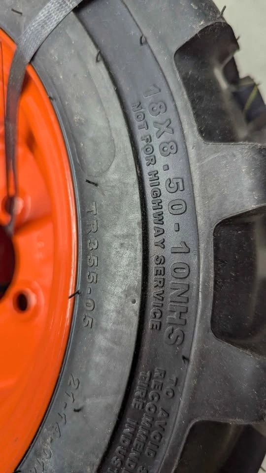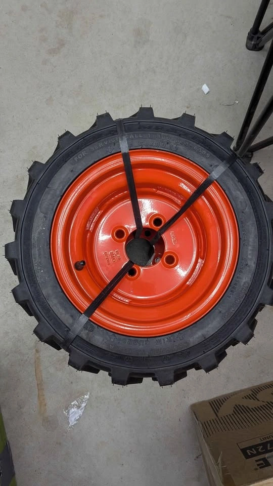 Brand new, never installed. Perfect condition. These are front wheel assemblies for Kubota BX tractors, specifically models BX2350D, BX2360, BX2370, and BX2380. The size is 18x8.50-10.