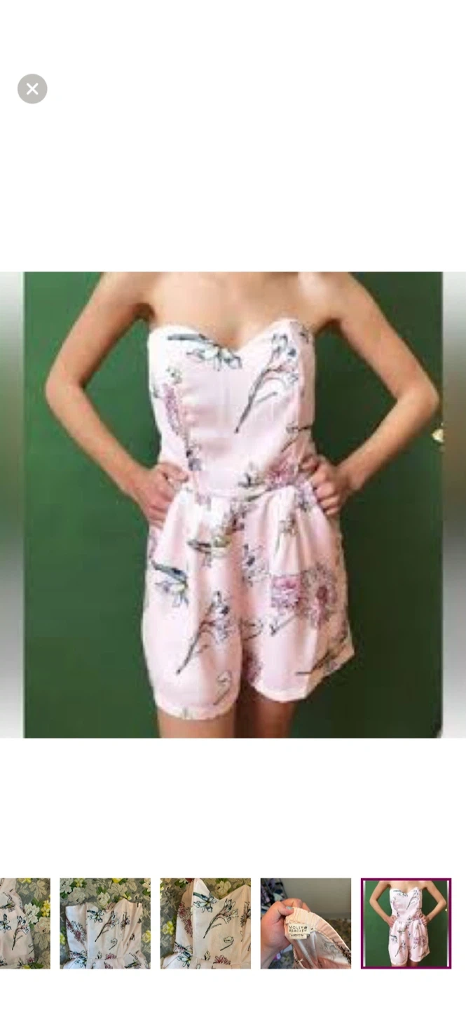 Molly bracken brand. Strapless shorts romper. Zipper back & pockets. Top is structured. Pink floral print. Size medium. Brand new condition