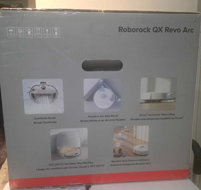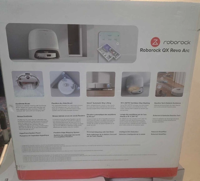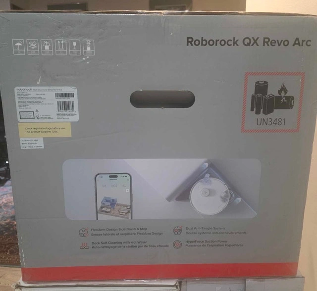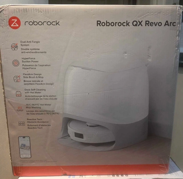 Brand new, never opened Roborock QX Revo robot vacuum. This is a top-tier model with a self-cleaning dock. It features auto mop washing and drying, strong suction power, smart mapping, and a fully automated cleaning system. Selling below retail. Serious buyers only. Pickup in Scarborough. Cash accepted.