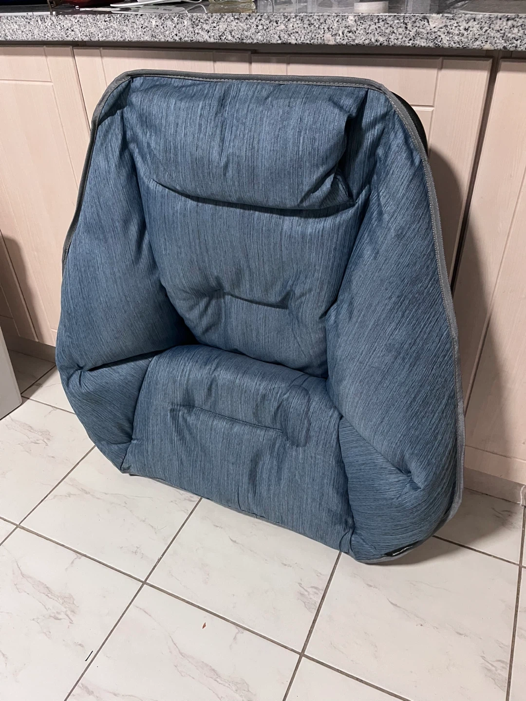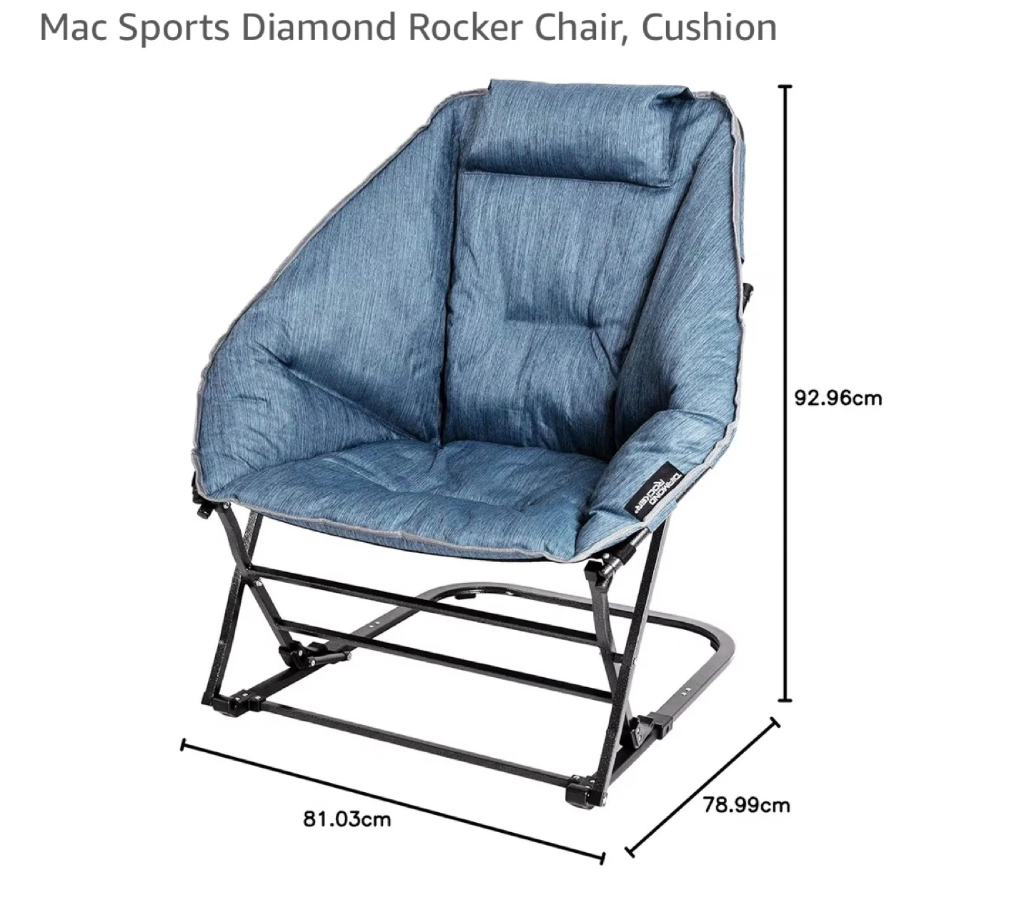 This is a comfortable blue Aero D'ar portable camping chair. It's made of durable fabric with a sturdy metal frame, perfect for outdoor adventures. Folds up easily for transport!