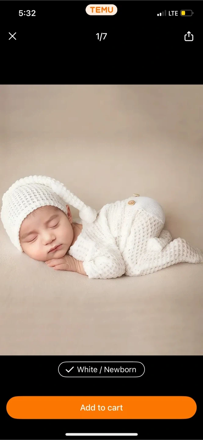 This soft, white newborn outfit is perfect for photoshoots. It's a cosy, knitted romper with a matching long-tail hat and a decorative pocket. Includes a cute pom-pom detail on the hat.