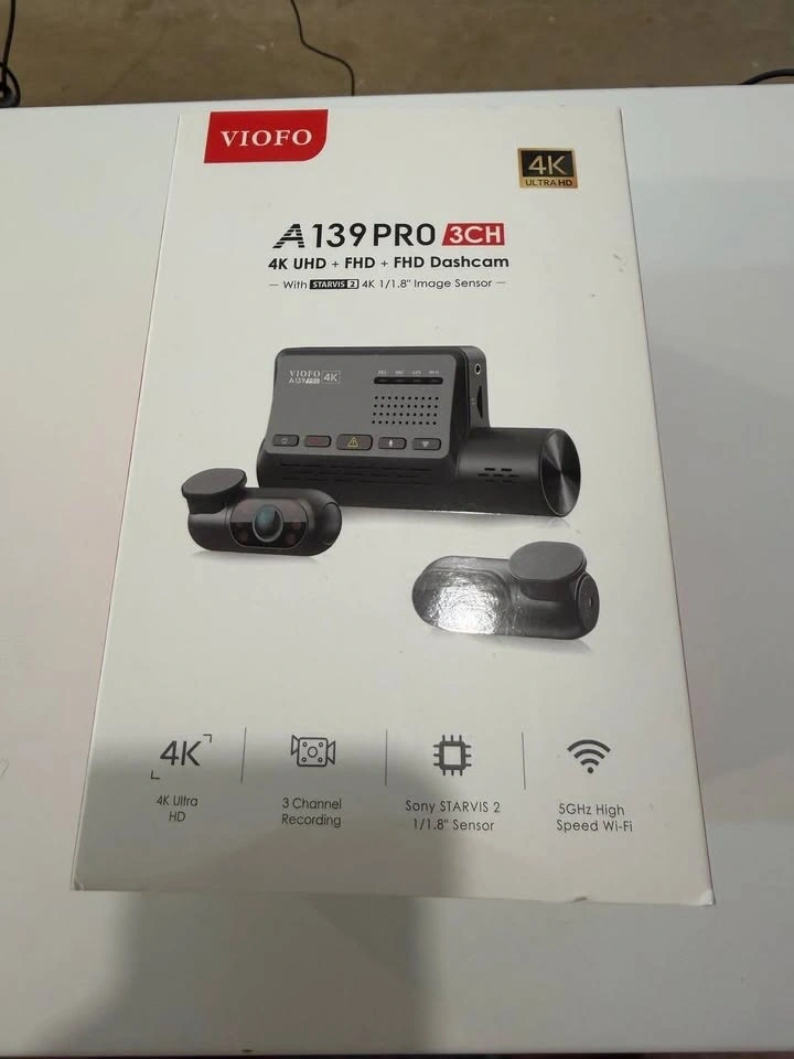 Selling my Viofo 3ch dashcam with 4K in the front, 1080p interior cam, and 1080p rear cam. Comes with all original cables and accessories. I'm also including extra Command Strips for mounting and a 256GB micro SD card.