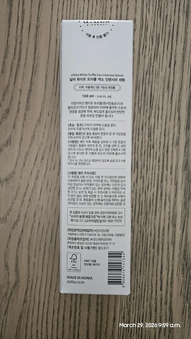This d'Alba White Truffle Exo Intensive Serum comes in a 160 ml bottle. It's designed to hydrate and nourish skin for a radiant look. Made in Korea.