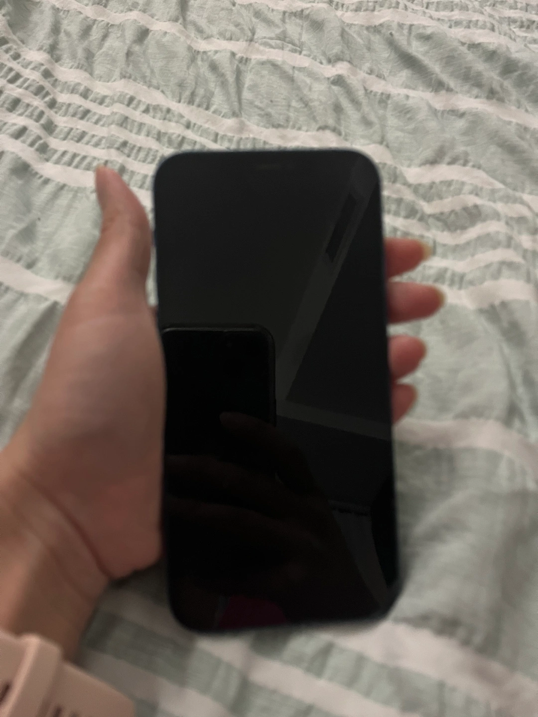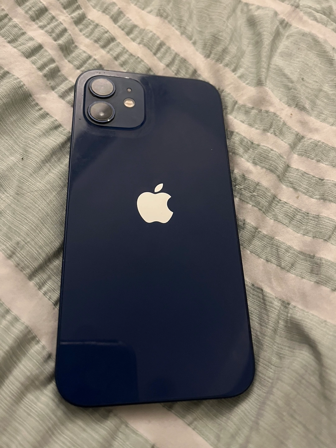iPhone 12, midnight blue colour. 128 GB storage. Minor cosmetic wear. Flashlight doesn’t work and neither does the camera