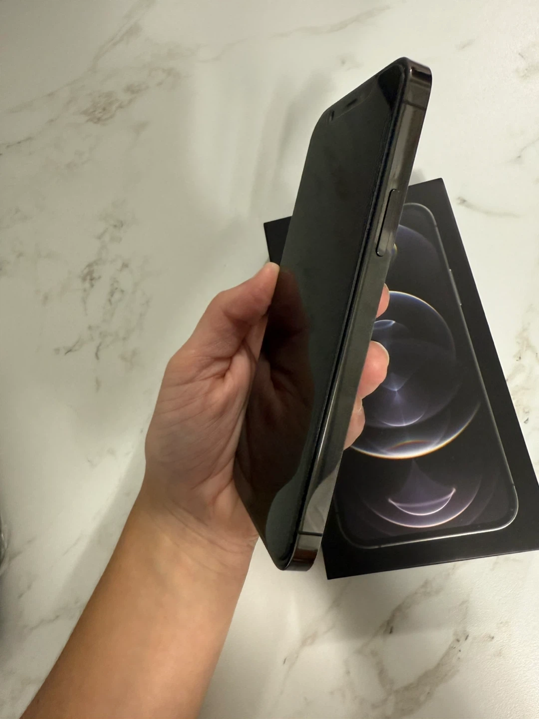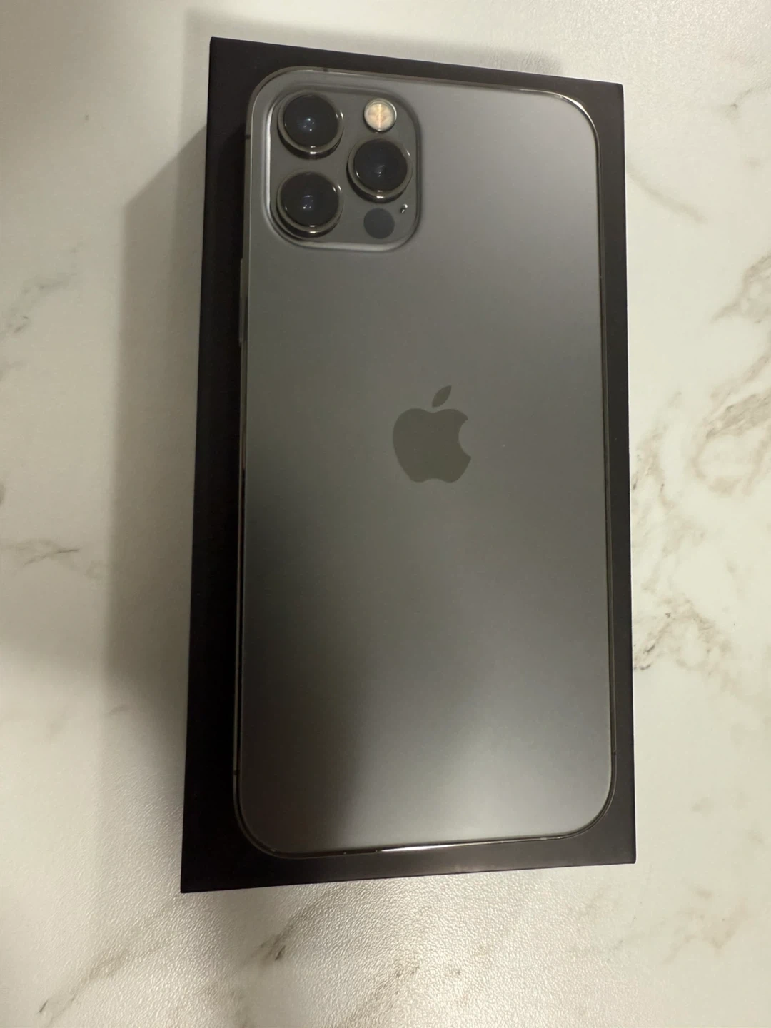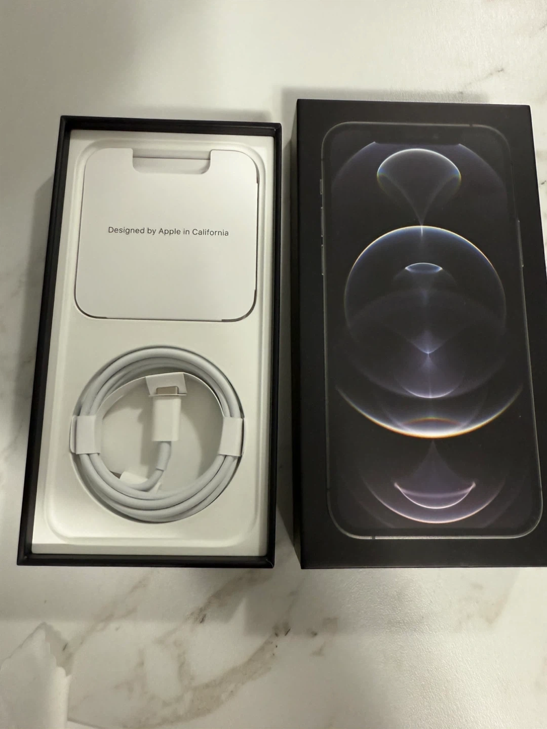62iPhone 12 Pro Size: 256gb colour: graphite Battery: 74% No scratches always had case and screen protector on Original box included Brand new power cord, wall plug and even includes brand new wired headphones 3 cases included, 2 of them are otterboxes 3 glass privacy screens are included as well Excellent condition and ready to use without having to buy anything else when all is included and more