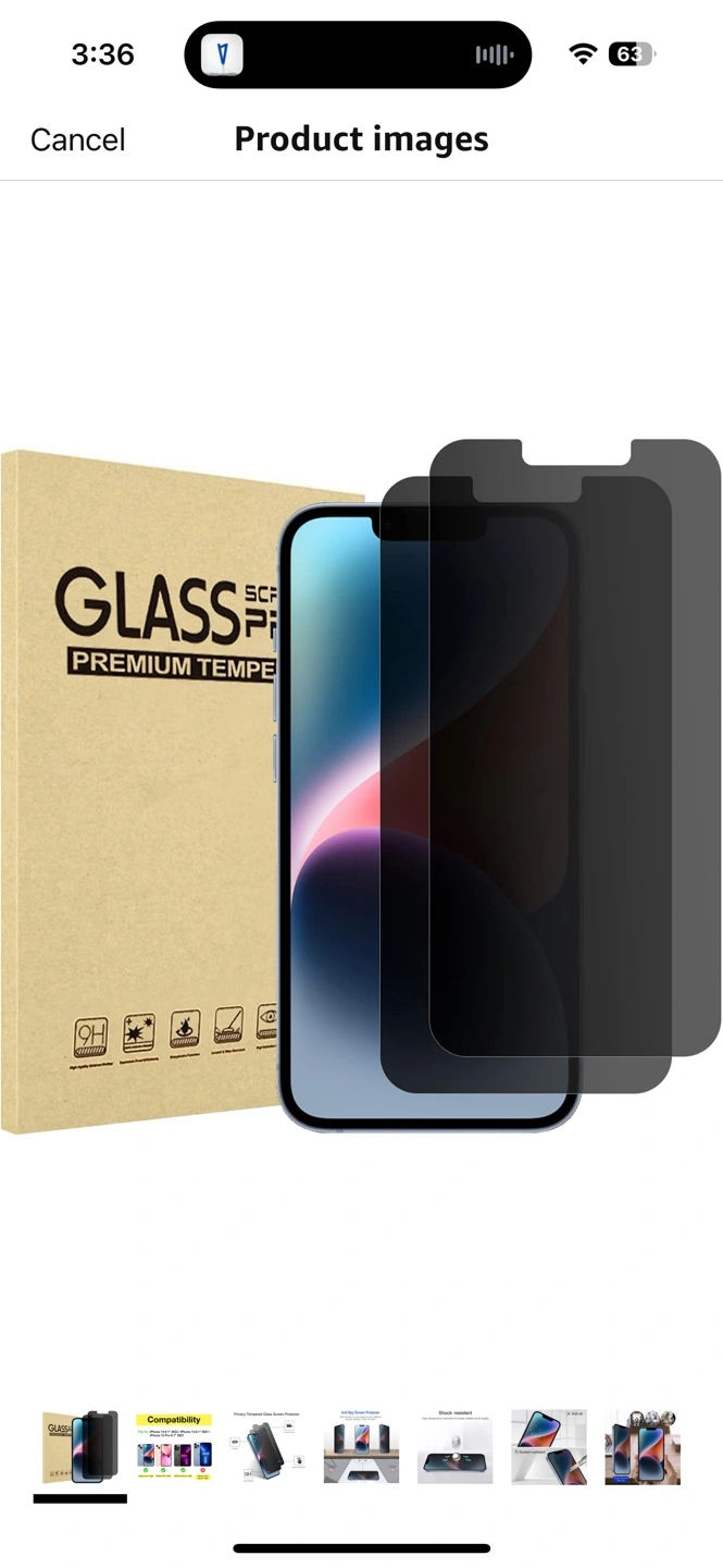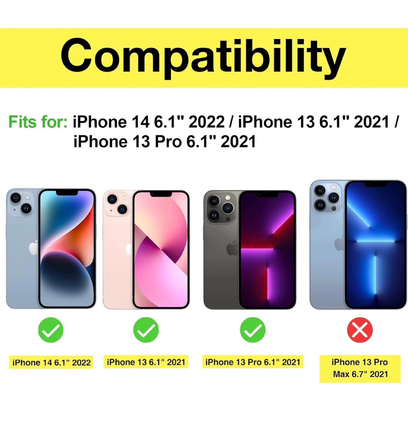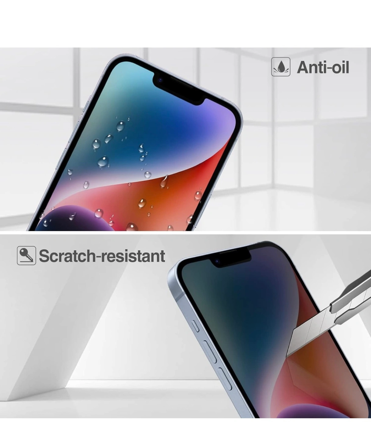 Two-pack anti-spy dark screen protectors. 9H+ high strength tempered glass. 2.5D rounded edges. Highly responsive. Compatible with iPhone 14 6.1" 2022, iPhone 13/13 Pro 6.1" 2021. Buble free