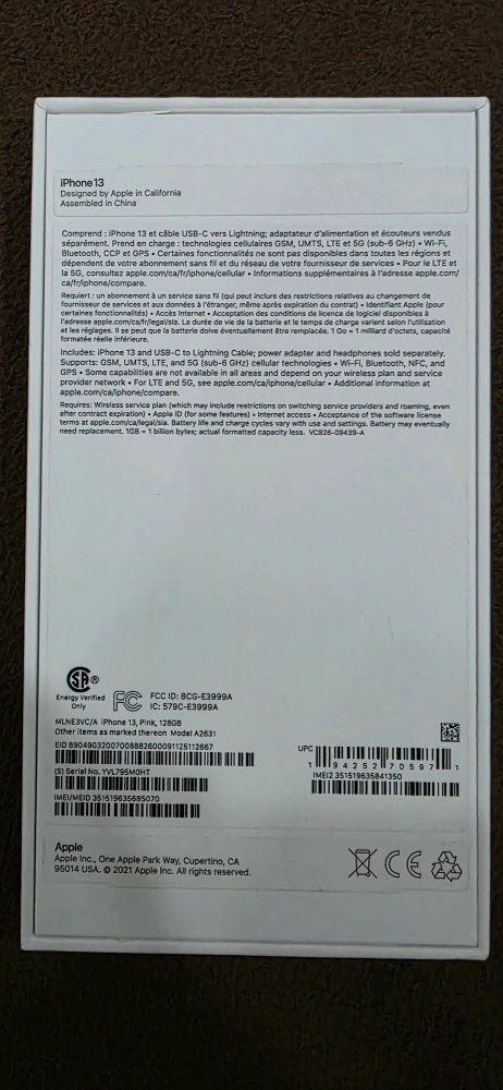 Iphone 13 pink 128Gb Box + Charger cable ONLY