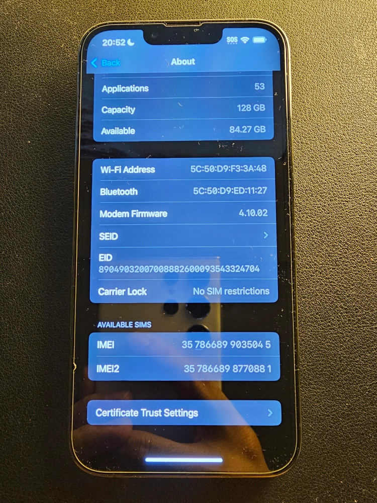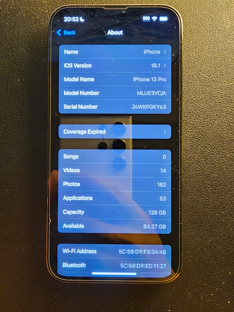18128 GB storage Graphite Excellent condition (bought from rebeloo) ios 18.2 (beta 3) 85% Battery Health Unlocked (Canadian Version) *screen protector applied* *no charger or box included* Originally bought in excellent condition from Rebeloo, decided I did not need it.