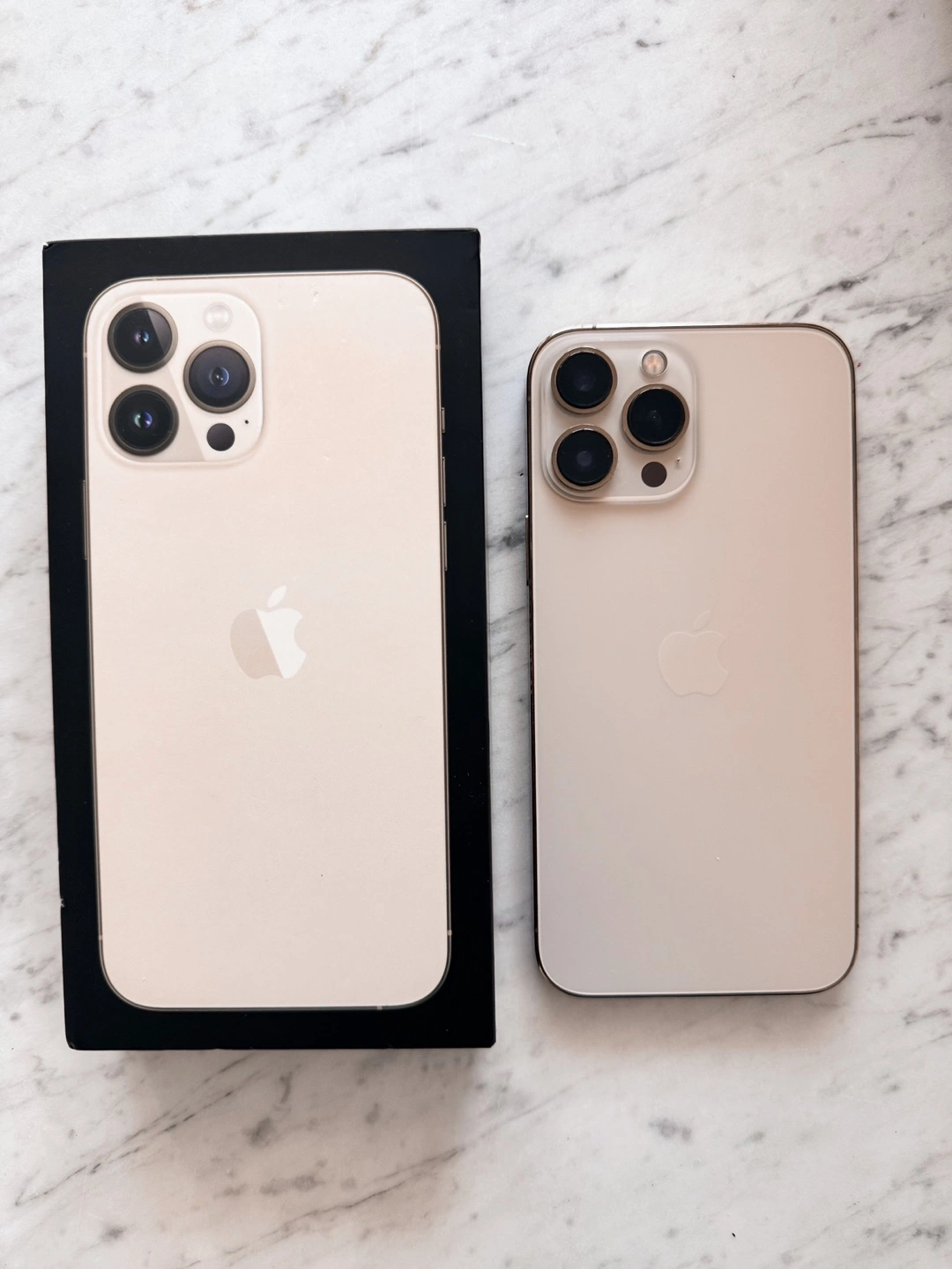 Recently upgraded so selling this one. iPhone 13 Pro Max 1TB storage Gold color Battery Capacity 84% Unlocked Asking $850 Cash only, lowball offers ignored Comes with box & charging cable