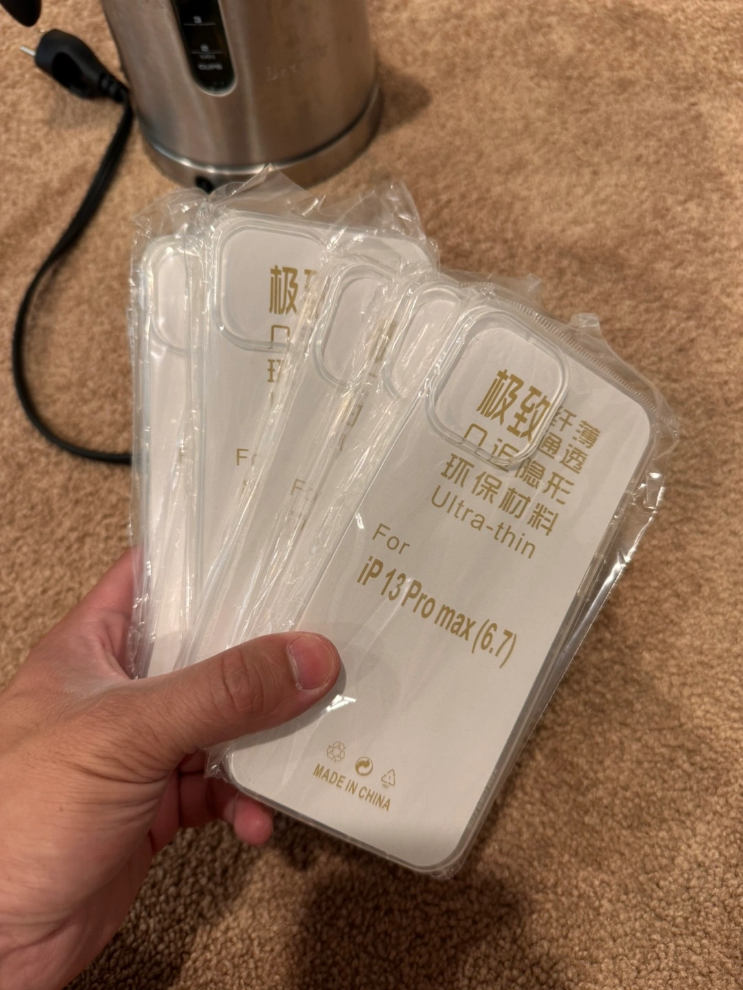 Three brand new, ultra-thin, clear iPhone 13 Pro Max (6.7) phone cases. Individually packaged. Made in China.