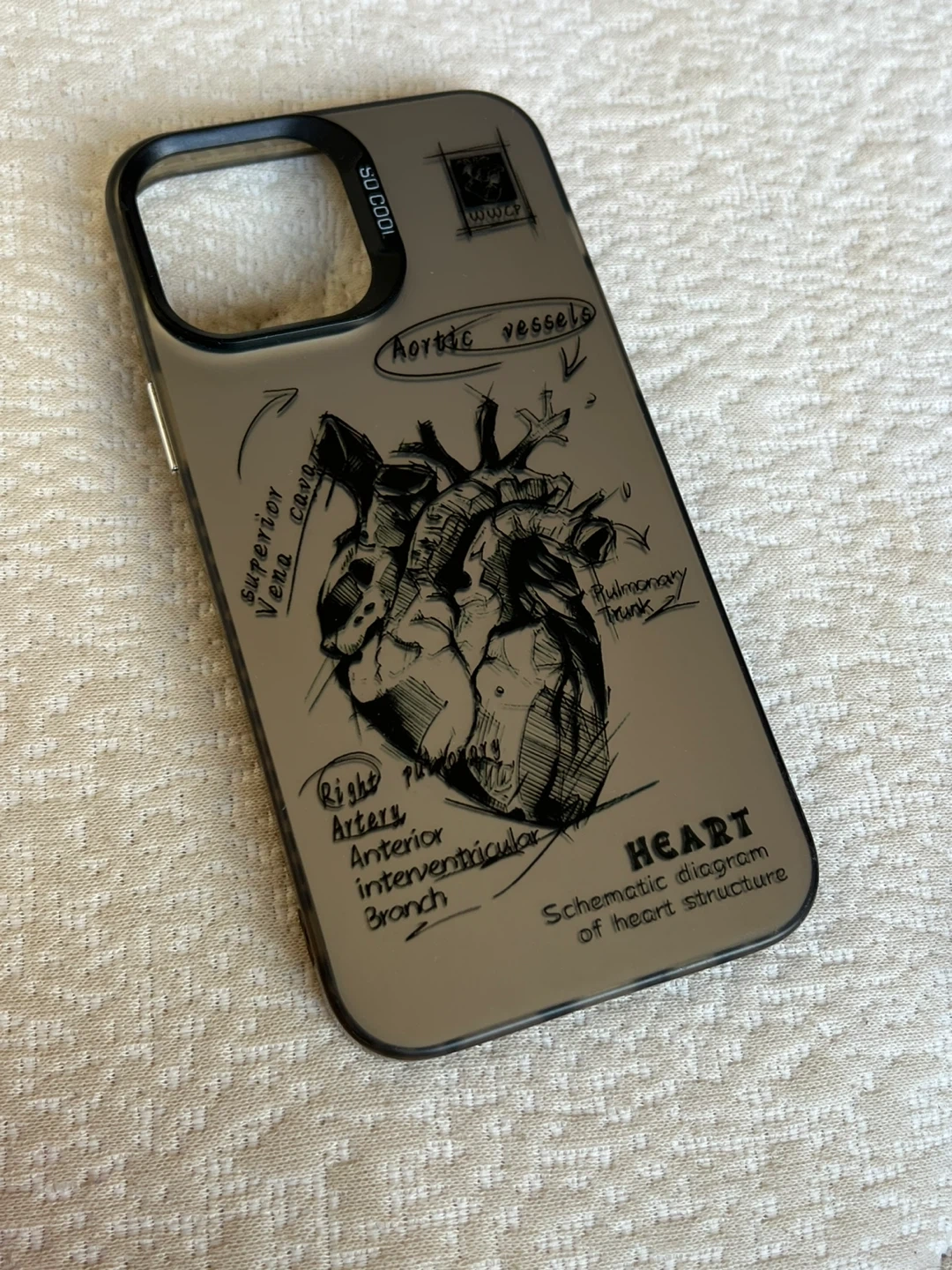 Selling two iPhone pro max case with a unique design! One side features Cristiano Ronaldo, and the other has a schematic diagram of the heart. It's in great condition and adds a cool touch to your phone