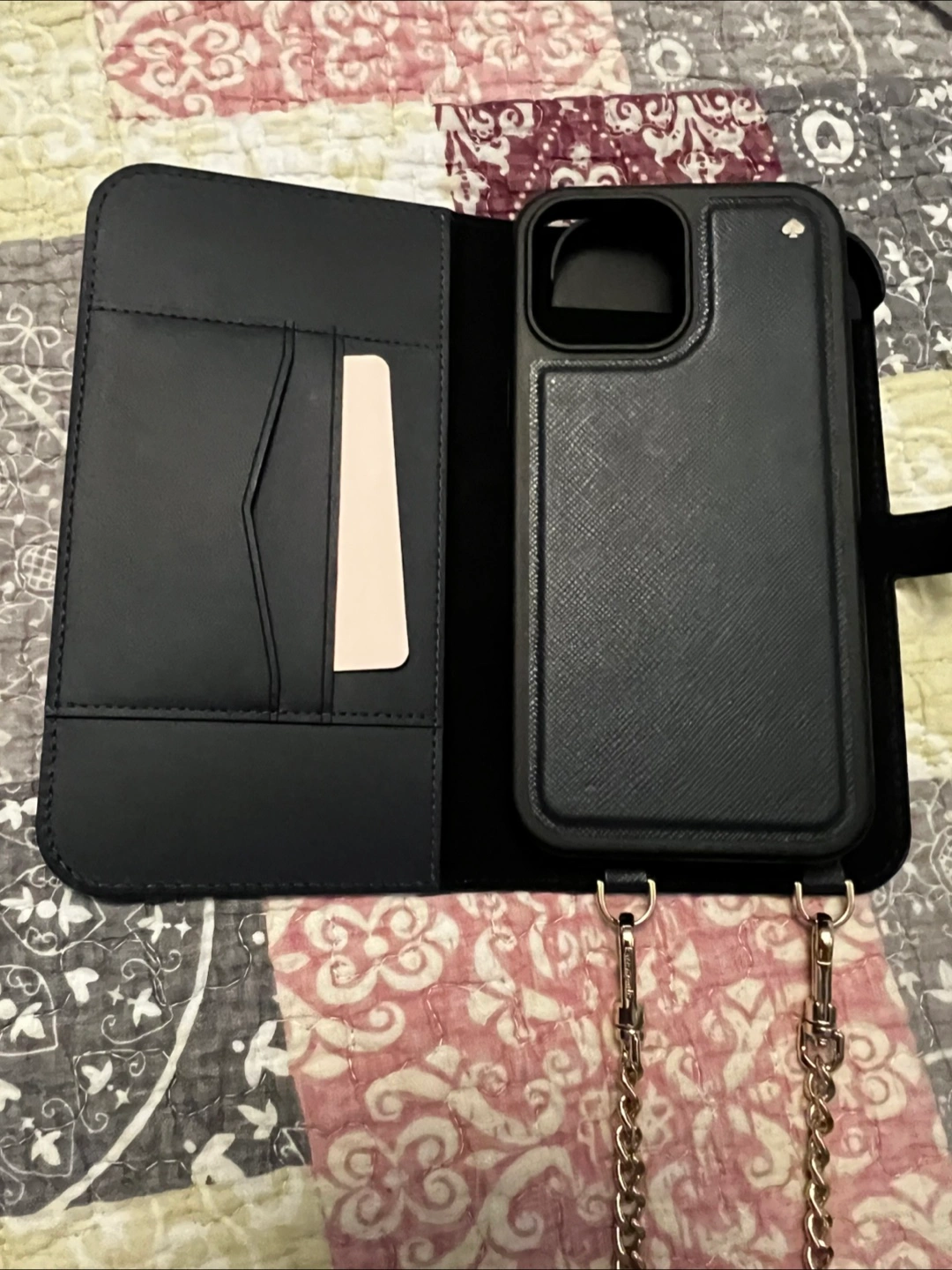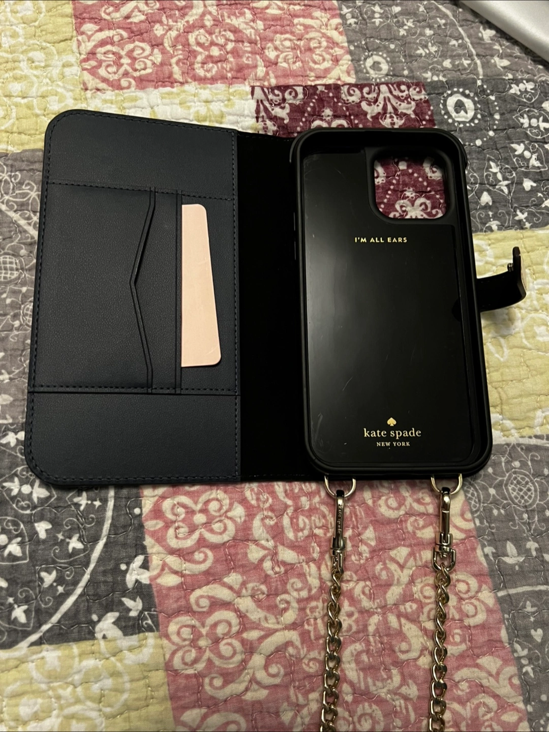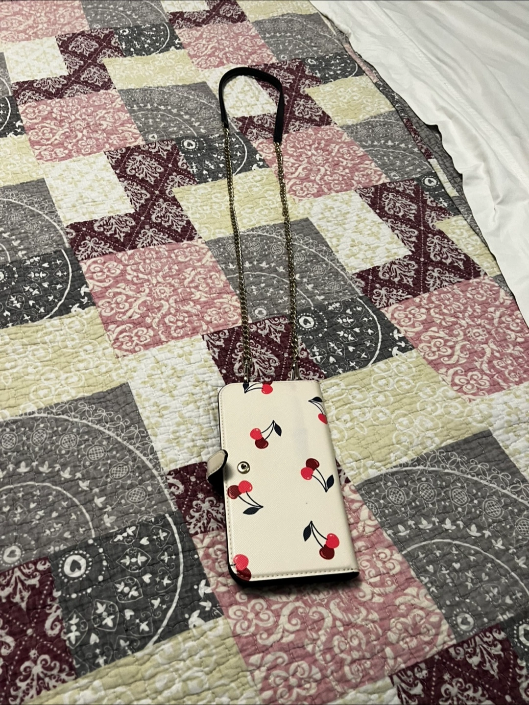 Check out this cute Kate Spade iPhone case! It has a handy chain, perfect for keeping your phone close. It also doubles as a wallet!