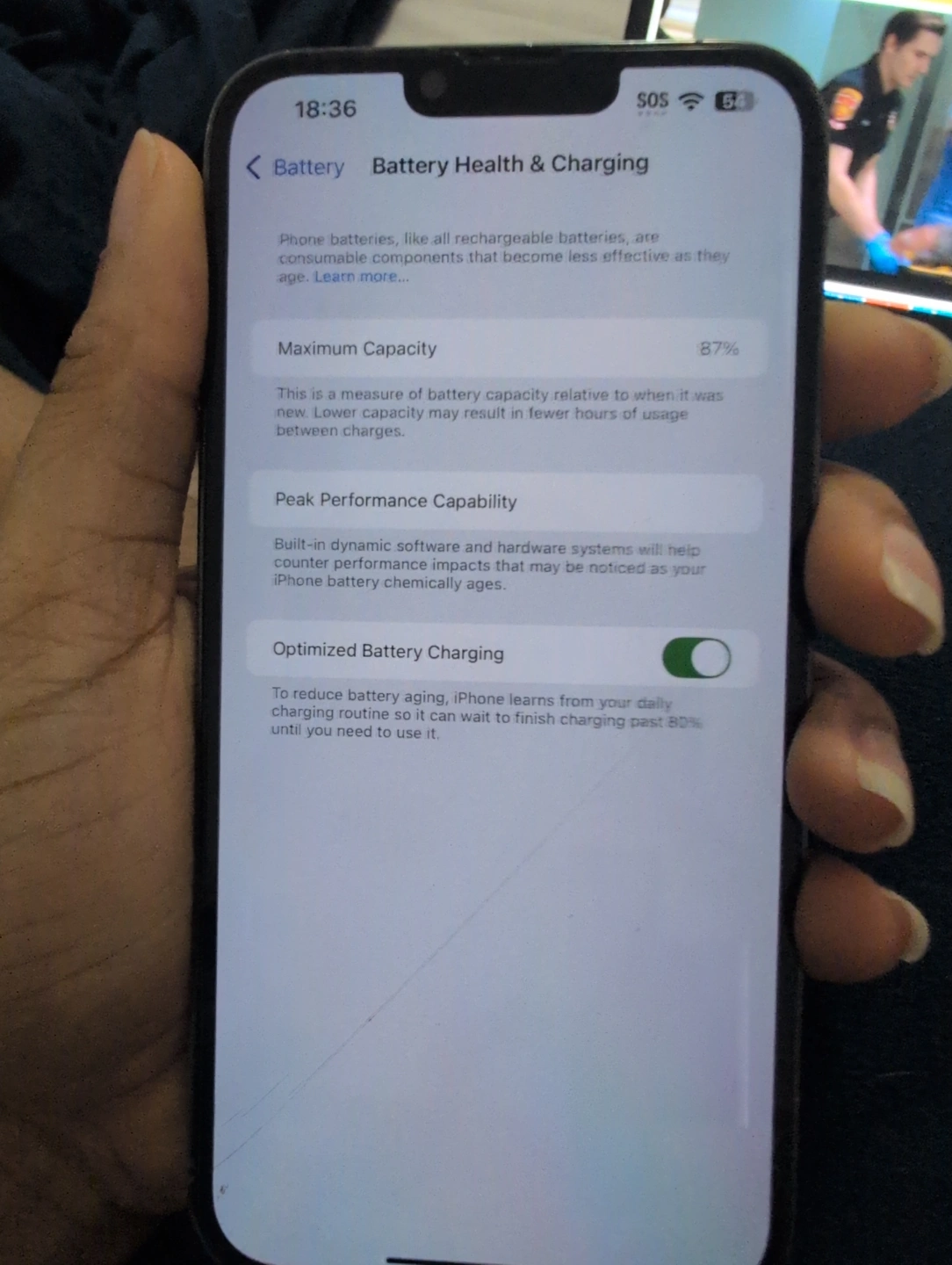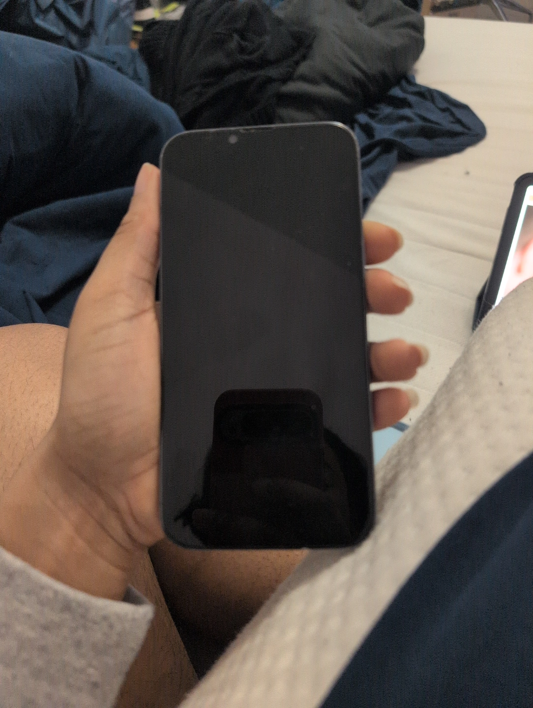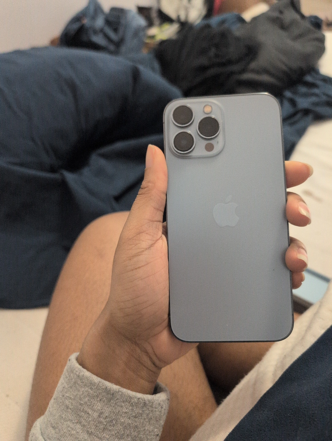 75Pre-owned iPhone 13 Pro Max. Sierra Blue colour. 128 GB storage. Battery health at 87%. Selling as is. Screen guard is on it. The screen is completely clear with no scratch on it. Comes with a cord.