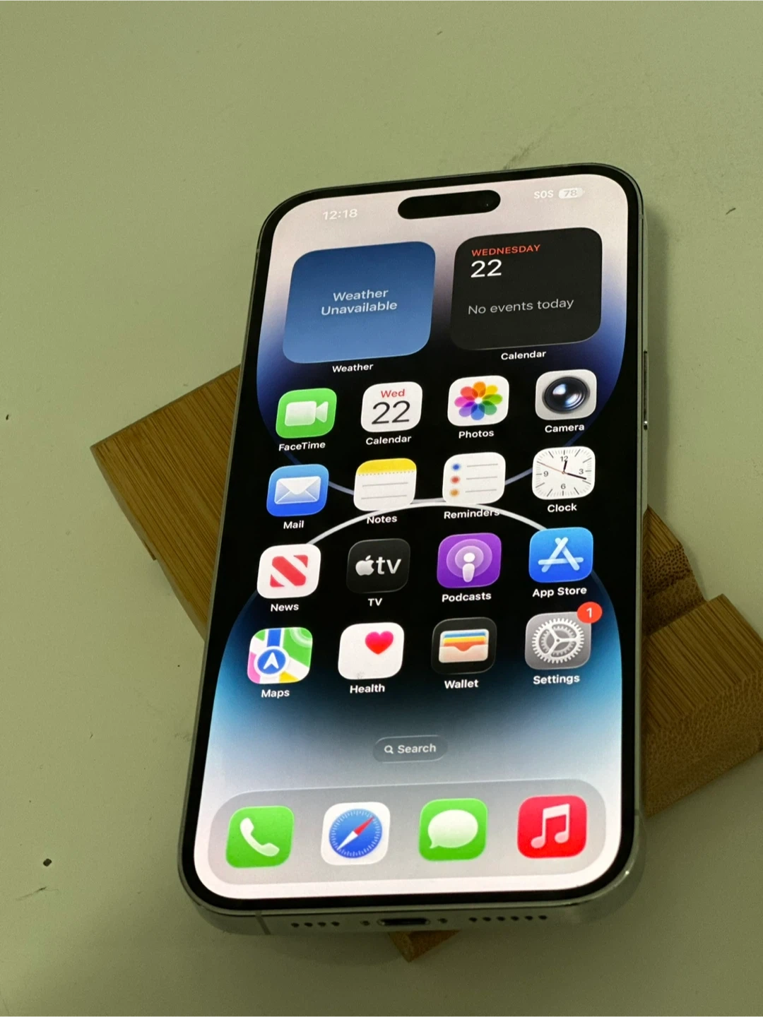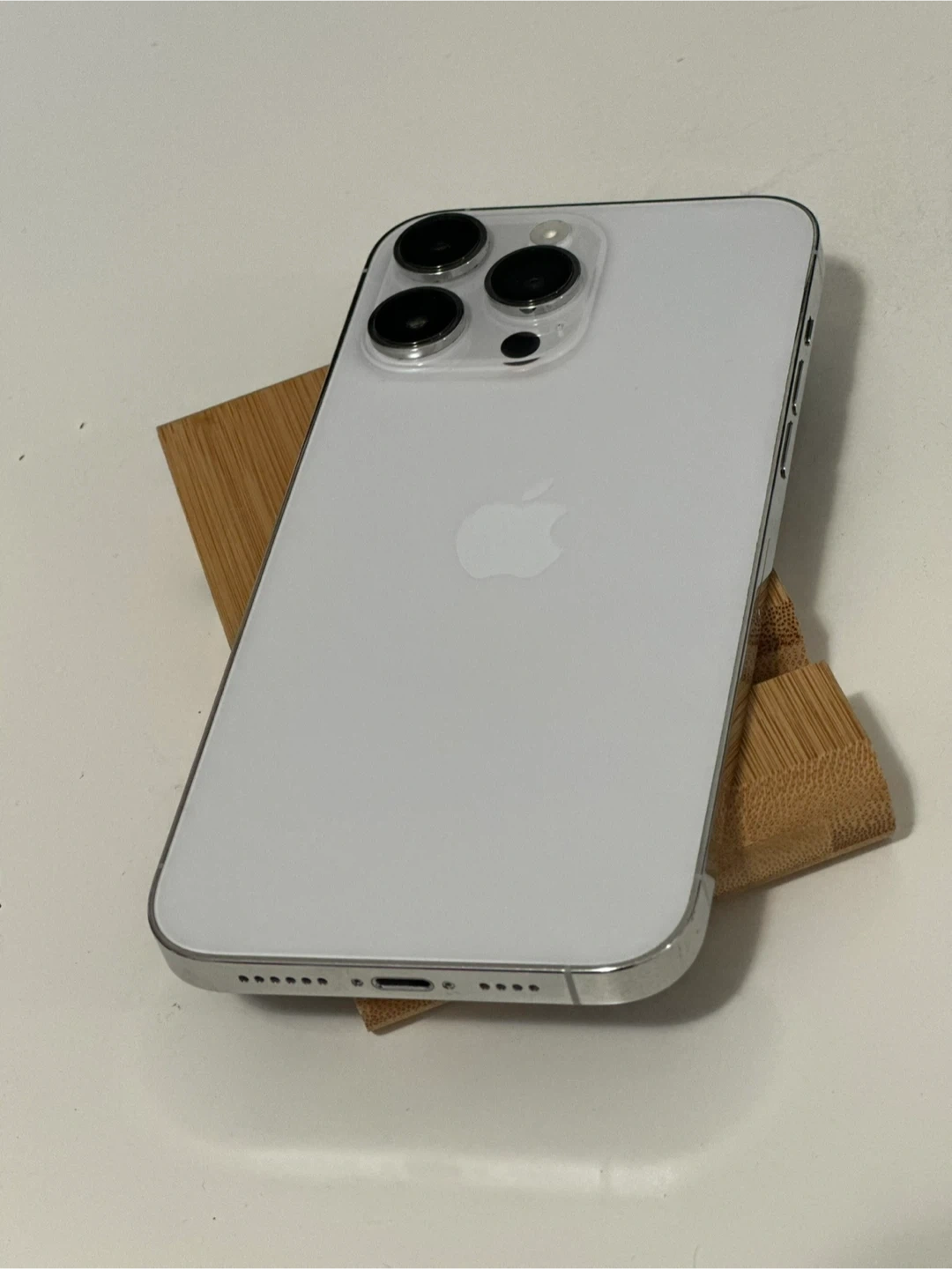 Selling my iPhone 14 Pro Max in silver. It's in great condition with zero marks or scratches and has 128GB of storage. The battery health is at 83%. Feel free to ask any questions! Comes with cable as well.