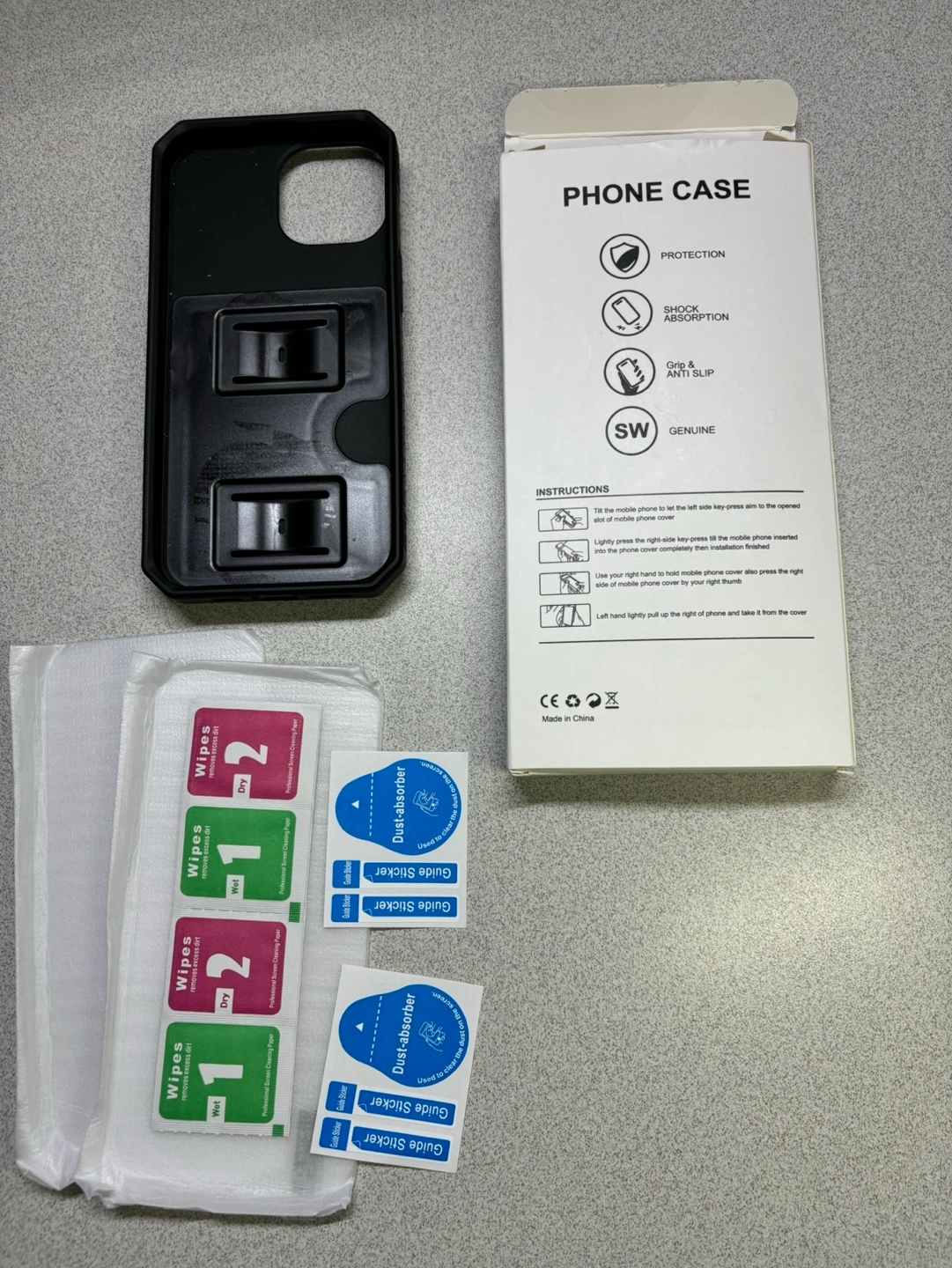 23New phone case and screen protector. Includes installation wipes and stickers. Black case for mobile phone. Professionally designed.