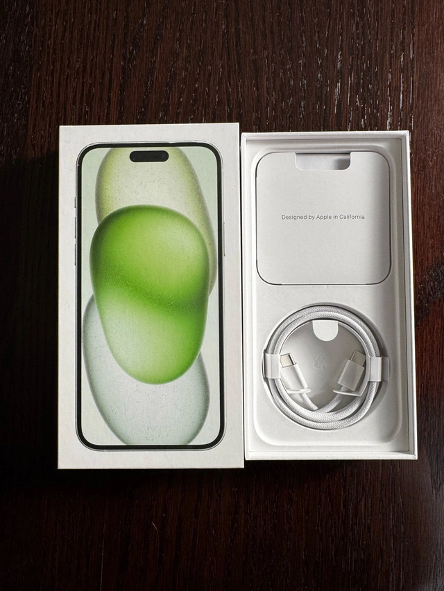 15Green iPhone 15 Plus 128 GB. Perfect condition. Always used with a screen protector and case. Screen protector currently installed. Includes 4 cases, box and unused original USB cable. Still under AppleCare for another month. Battery at 89%. Can be used with any carrier.