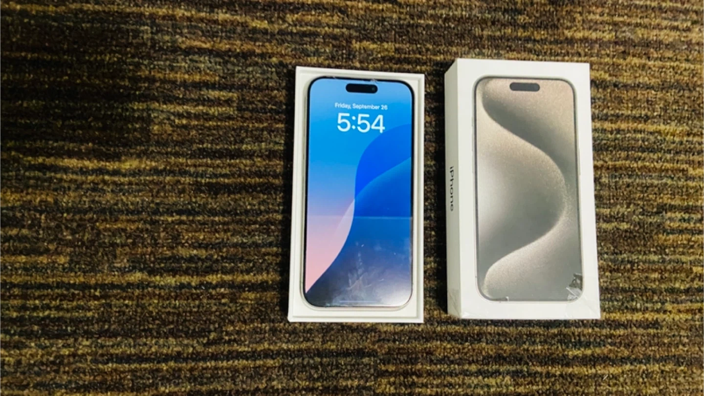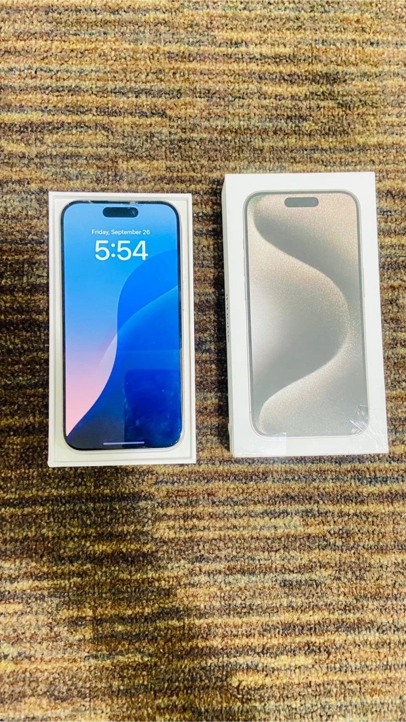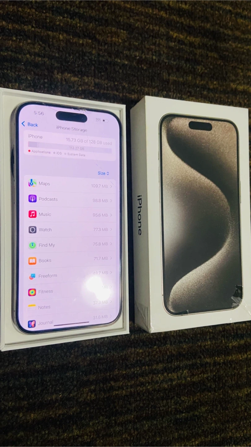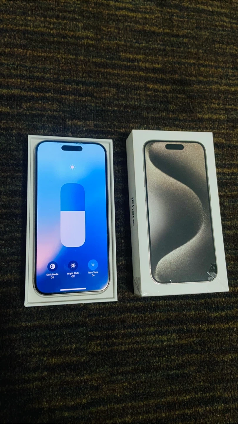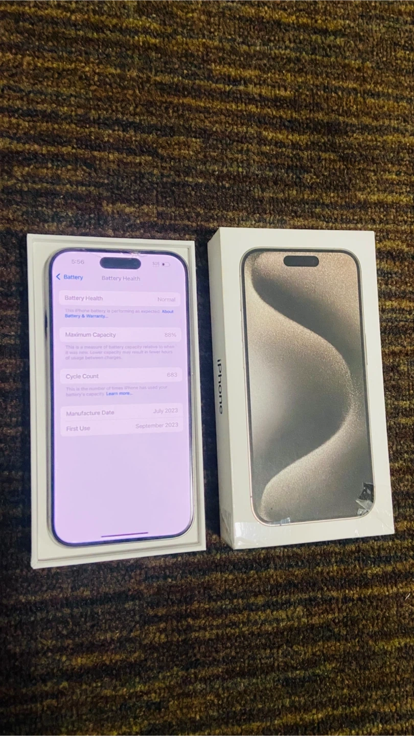 Selling my iPhone 15pro cracked screen 128gb Battery Life 88% Comes with box