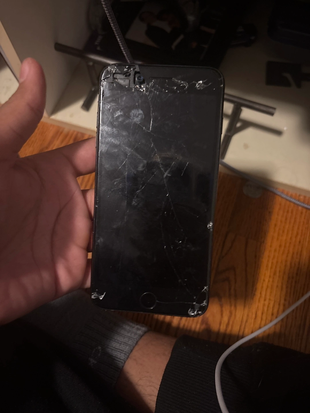 Black iPhone 7. Cracked screen. Sold as is for parts or repair. No guarantees. Screen works but touch dosent