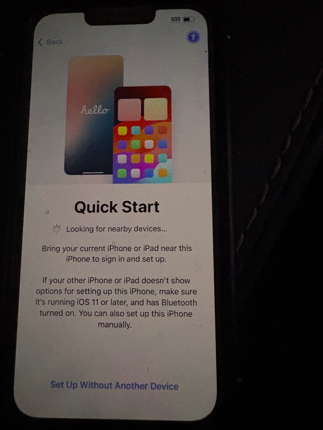 5Used iPhone for sale. Battery health at 85%. Setup screen shown in images. Ready for activation.