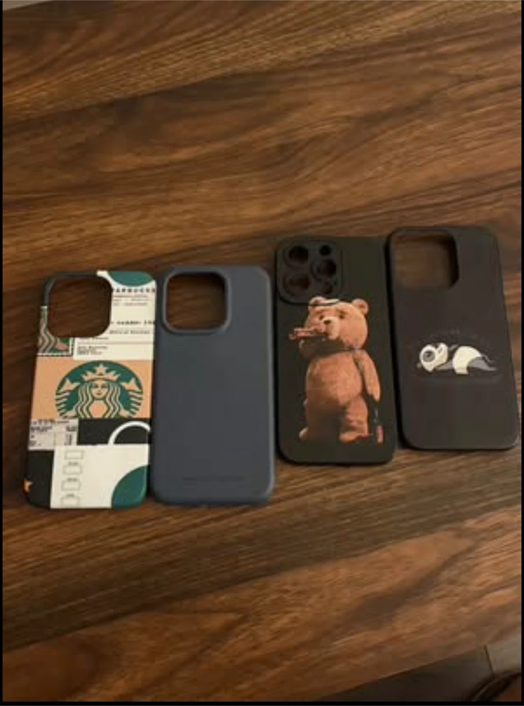 15Selling a variety of iPhone cases! There's a Starbucks-themed case, a solid blue case, and two cases with bear and panda designs. They are in great condition and ready for a new phone!