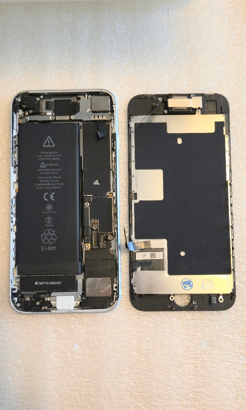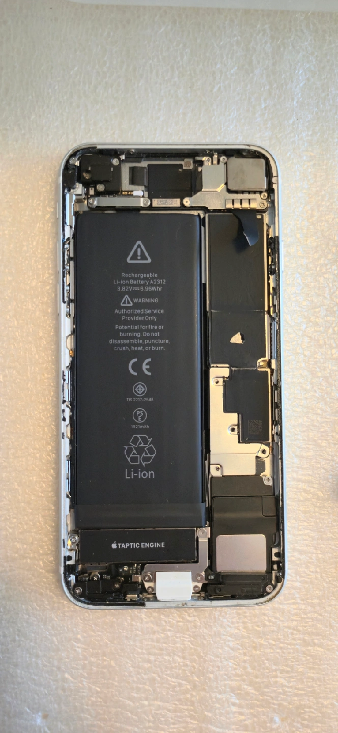Selling an iPhone SE (2nd generation) for parts. It's disassembled as shown in the pictures. Good for someone who needs components or wants to practice repairs (front screen cracked and no logic board)
