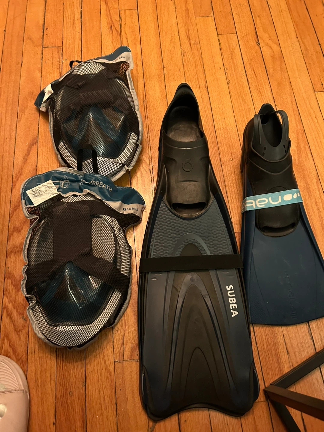 Buy & SellTwo Full Face Snorkel Mask and Two Fins SetTwo Full Face Snorkel Mask and Two Fins Set$55This set includes a two SUBEA full face snorkel mask and two pairs of SUBEA fins. It's great for exploring underwater. Fin sizes US 6.5 and US 3.5.ConditionLike newWHERE TO MEETPierre-Elliott-Trudeau French elementary school M6J 2S4View MapSELLERverifiedKathyDundas West762 reviews0 chats·0 favorites·15 viewsSEND CHAT TO SELLERHi Kathy! I’m interested in your listing.Hi Kathy! I’m interested in your listing.Get the Karrot app to chatSign In to chat