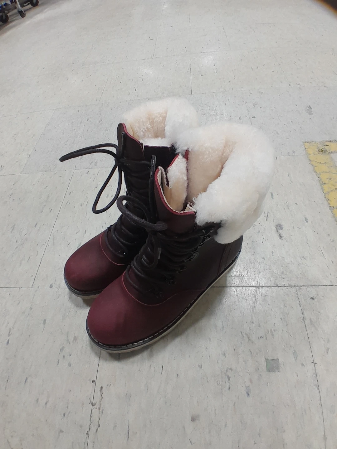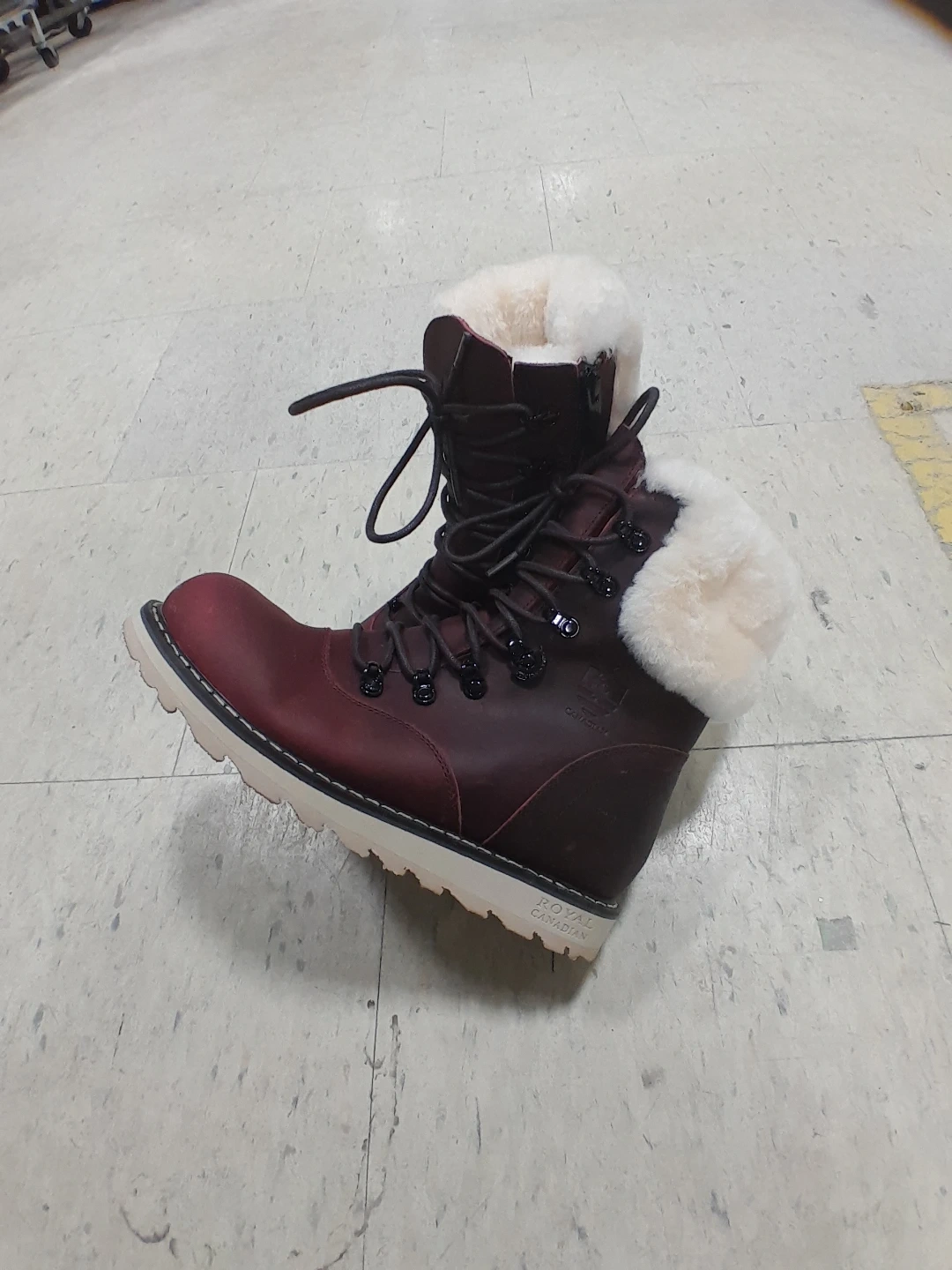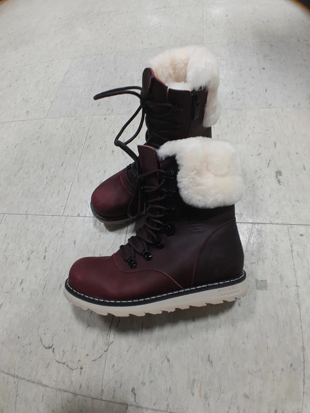 Stay warm and stylish in these burgundy winter boots from Royal Canadian. They feature a comfortable fur lining and a durable rubber sole for traction. Perfect for cold Canadian winters! Women's size 8.5.