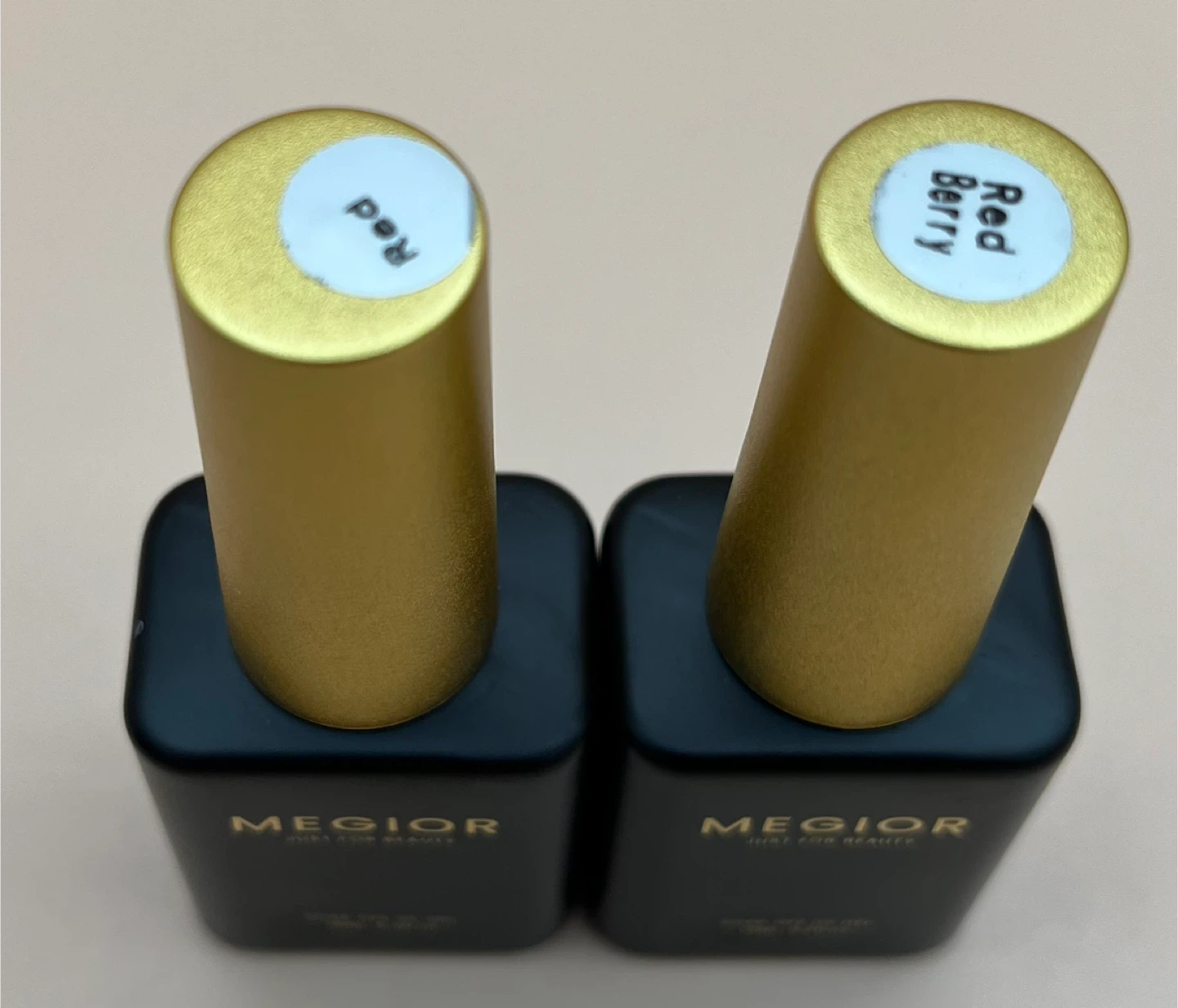 Selling two bottles of Megior soak off UV gel nail polish. One is in the colour Red, and the other is Red Berry! Both bottles contain 15mL / 0.5fl.oz of product