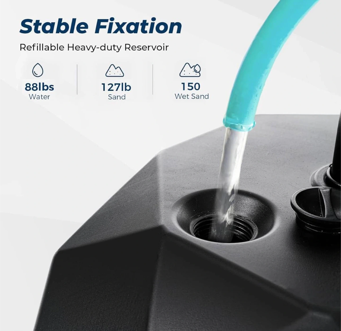 • Weight capacity up to 127 lbs (refillable with water or sand)