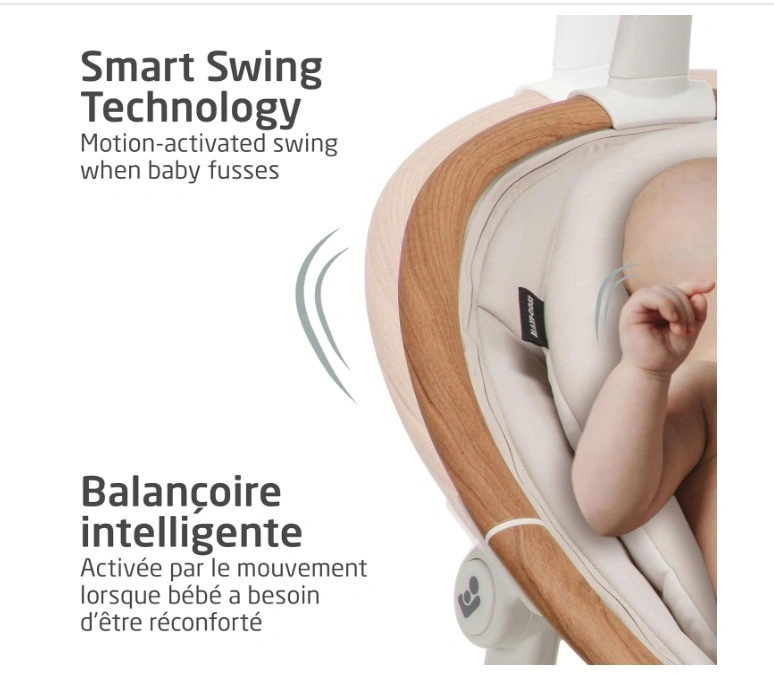 This premium baby swing from Maxi-Cosi features automatic motion sensing technology that detects when your baby becomes fussy and gently starts swinging to help soothe them.