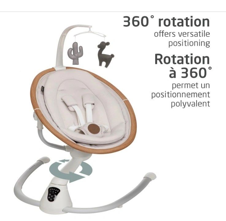 The 360° rotating seat allows you to keep your baby facing you anywhere in the room, while the built-in music and toys help keep them entertained.