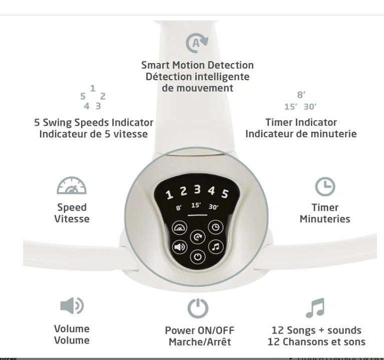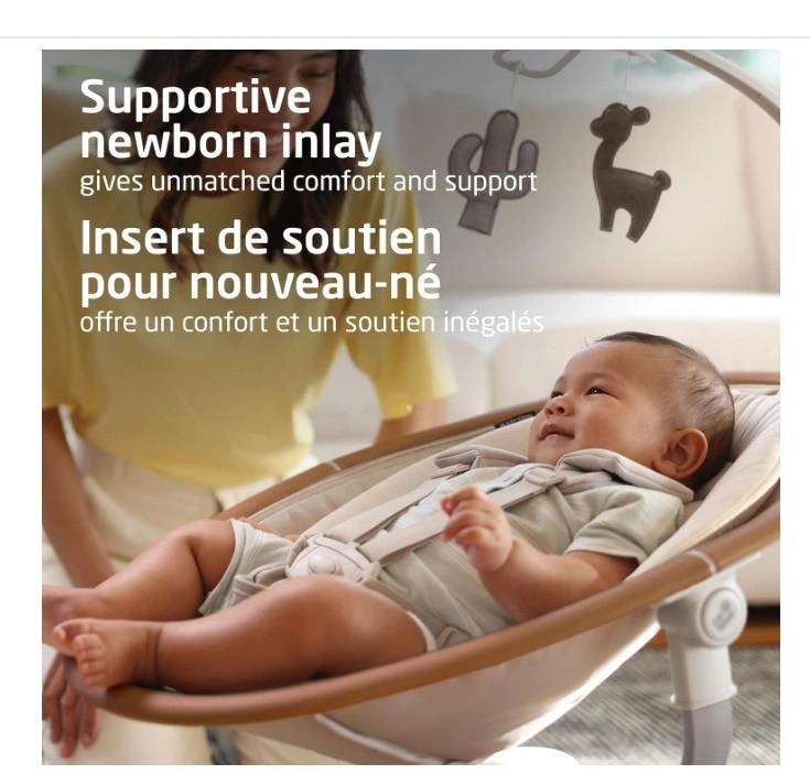 This premium baby swing from Maxi-Cosi features automatic motion sensing technology that detects when your baby becomes fussy and gently starts swinging to help soothe them.