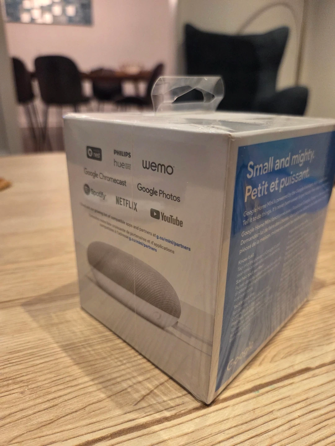 This is a new Google Home Mini smart speaker. It's powered by Google and can help with many tasks. Brand new, sealed in box.