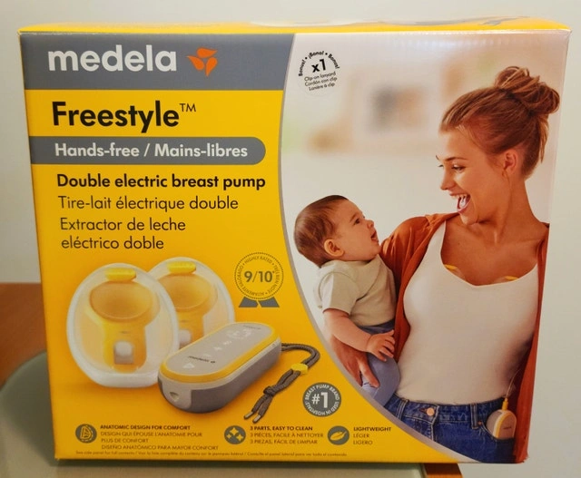 This is the Medela Freestyle Hands-Free Double Electric Breast Pump. It's wearable, portable, and discreet, giving you the flexibility to pump anytime, anywhere. The rechargeable, pocket-sized pump and wearable collection cups weigh just 2.7 oz each and hold 5oz of milk. They are designed to sit discreetly in your bra. Features Medela's 2-Phase Expression Technology, mimicking baby's natural sucking rhythm. The anatomically designed cups avoid localized compression and maximize milk flow. It's app-enabled for easy tracking with the Medela Family app. There are fewer parts to clean, and they are dishwasher safe. Condition is new. Payment is cashless only.