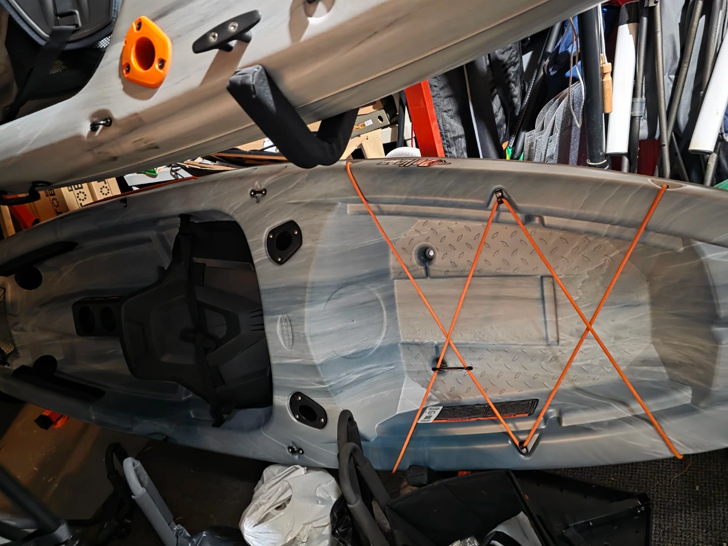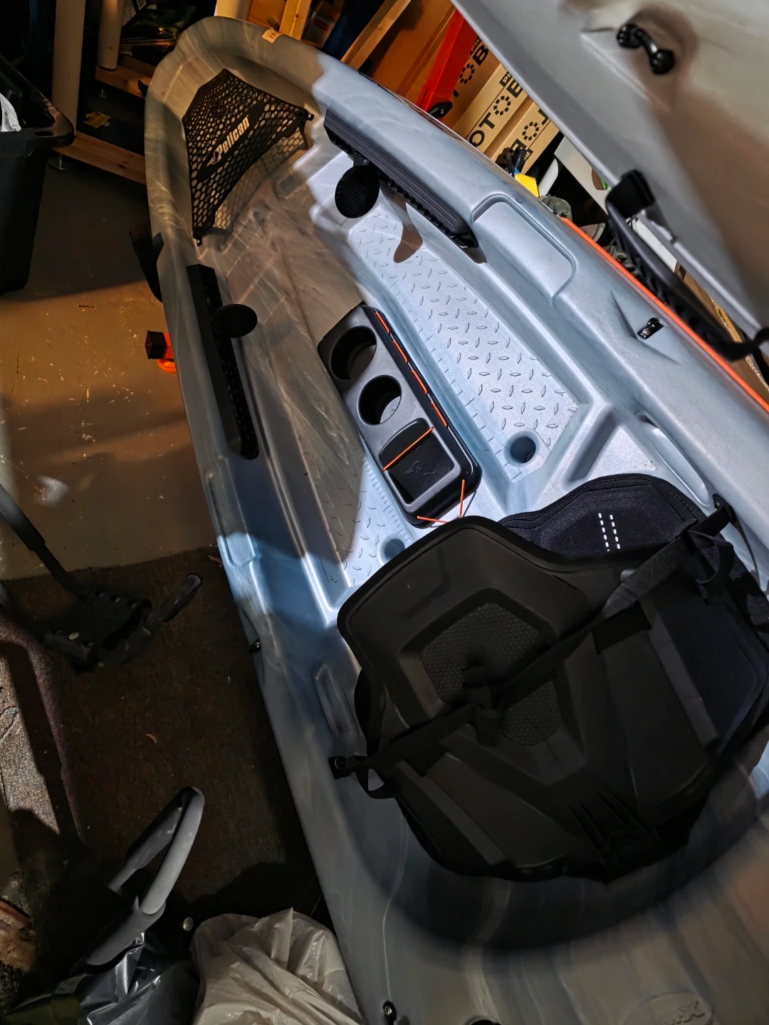 This is a Pelican Sentinel 100X Angler kayak. It's made of durable polyethylene. Maximum capacity is 275 lbs. 10 feet long.This kayak is great for fishing trips on calm waters! Used one time, great kayak but have upgraded